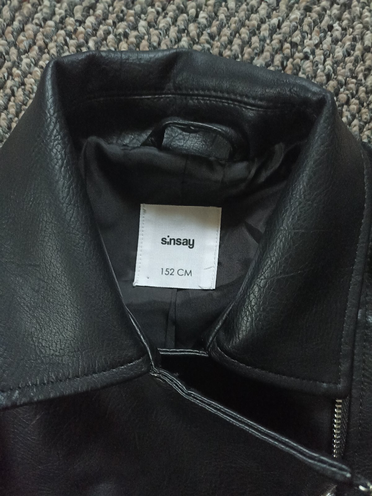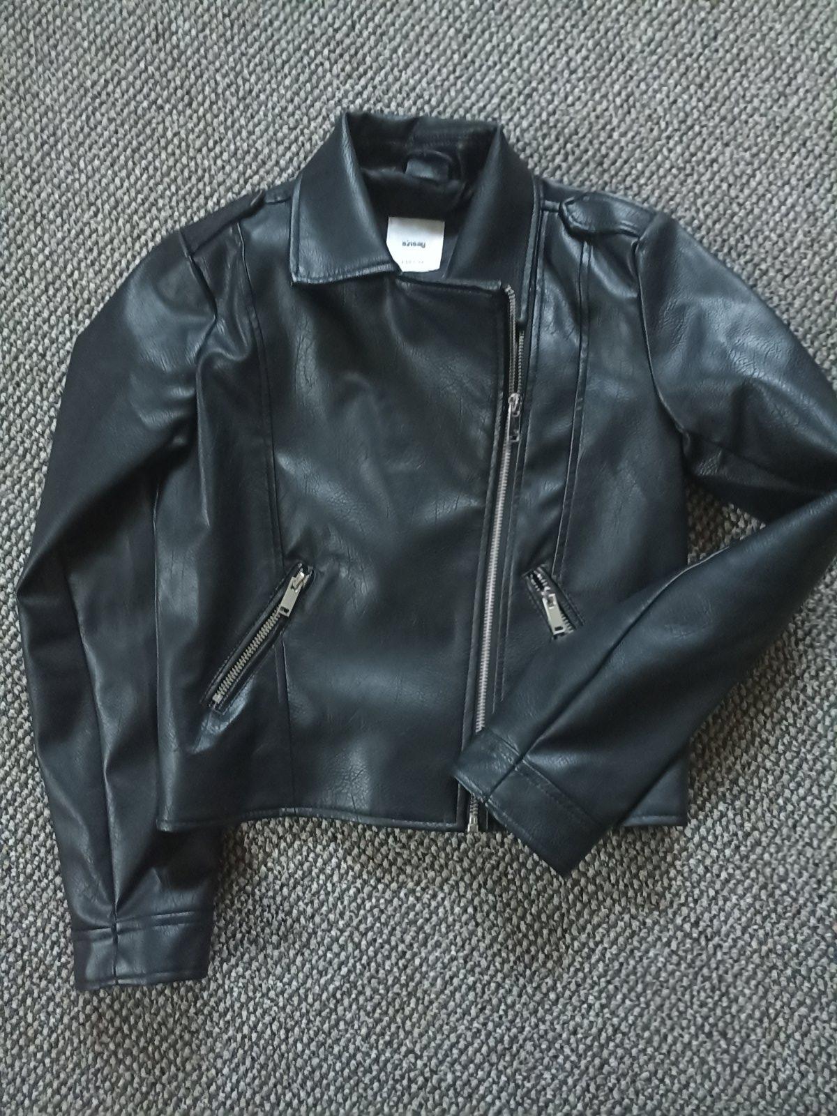 Koženková bunda Sinsay veľ. Cca,sedí na 152,bez poškodení ako nová,zipsy strieborne