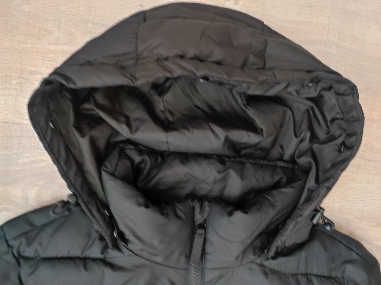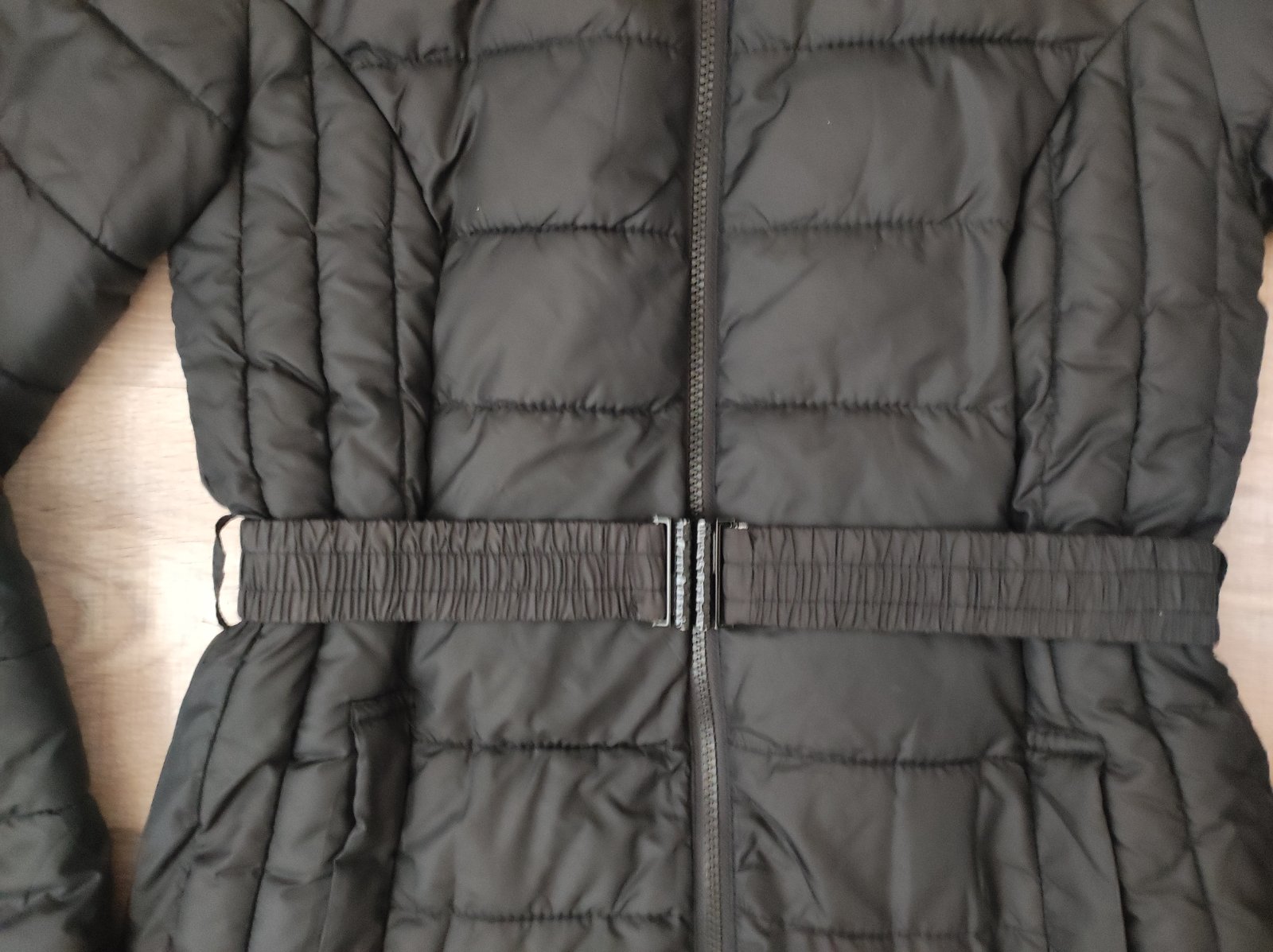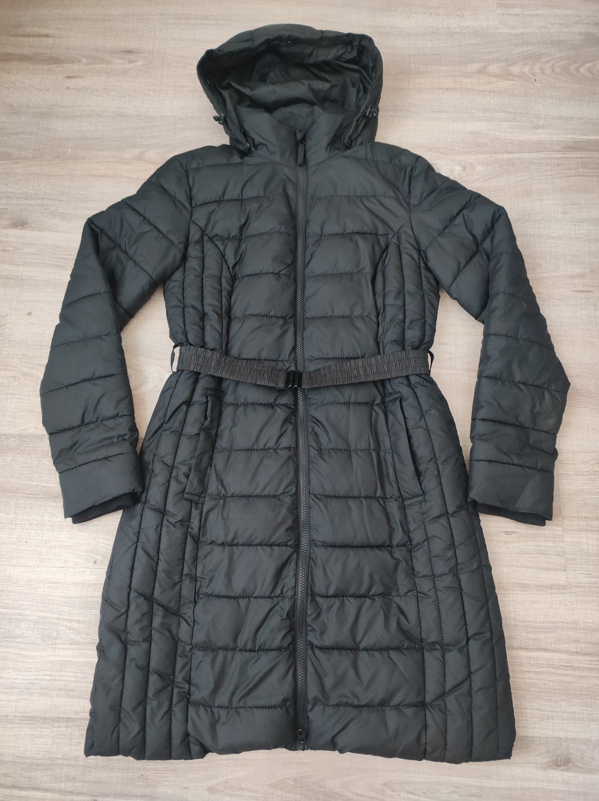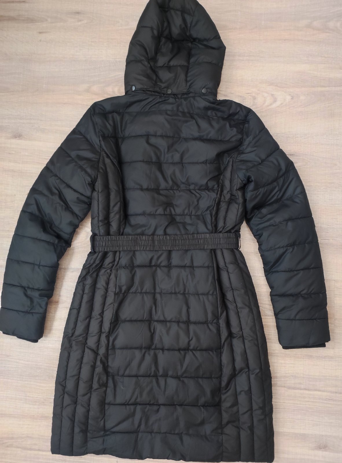 Minimálne nosená - stav super bez poškodení. Odnímateľná kapucňa, zapínanie na zips aj patenty, dve funkčné vrecká, jedno vnútorné na mobil - celková dĺžka 90cm + 8cm golier, šírka 2x 48-49cm, ruká...