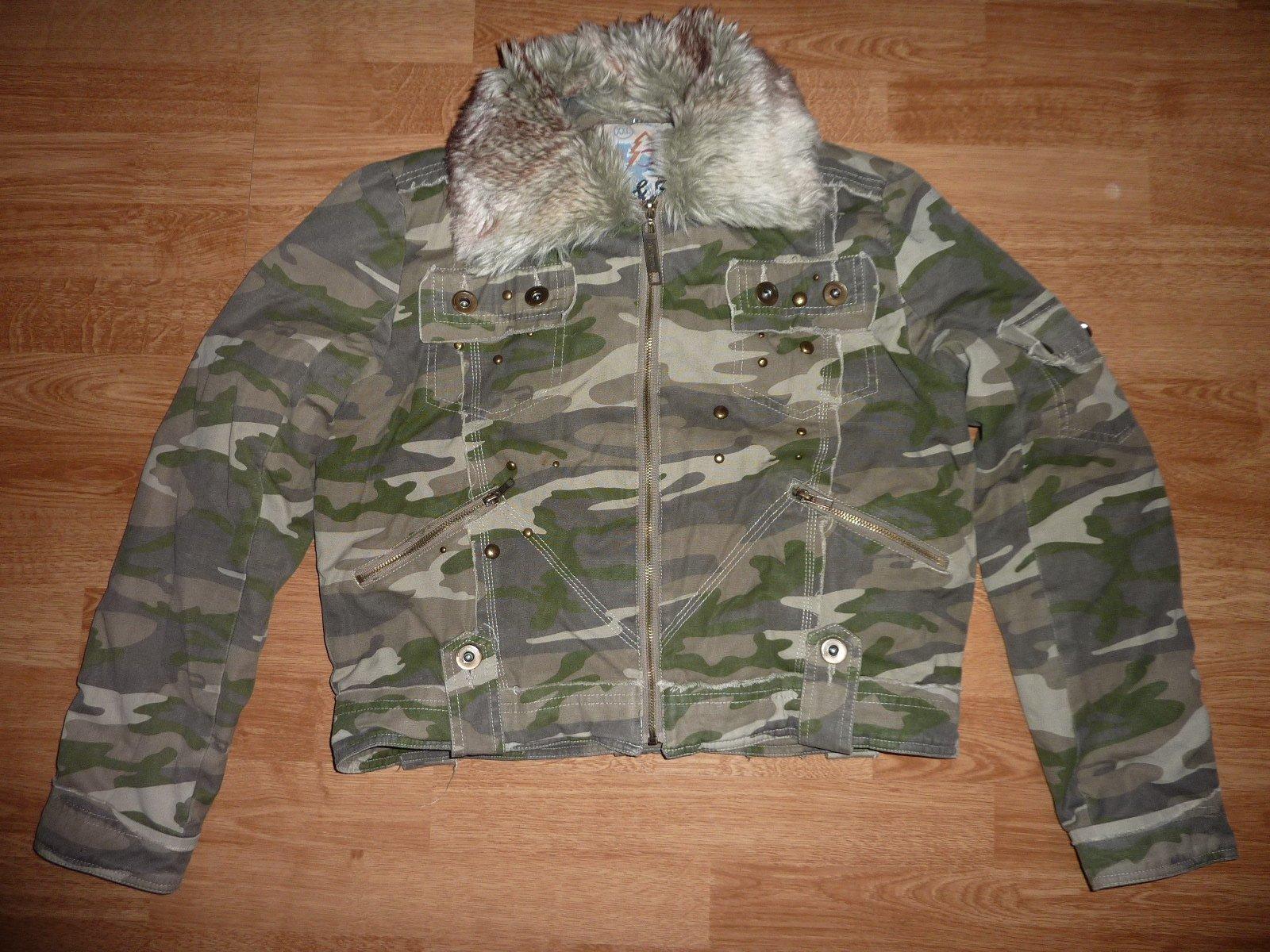 Predám krásnu maskáčovú zimnú bundičku kvalitnej talianskej znacky, bola raz oblečená... je mi veľká tak posúvam. Kožušinka na golieri je odopinateľná, na chrbte je krásne vyšívanie. Veľkosť je uvedená XXL ale je to skor XL. Rozmery: cel.dlzka od pleca dolu 52cm, dlzka rukavu od krku 75cm, sirka pod pazuchami 56cm x 2 az 59cm x 2, spodny okraj 50cm x 2 az 52cm x 2. Ako nova. Povodna cena 80€ teraz 30€.