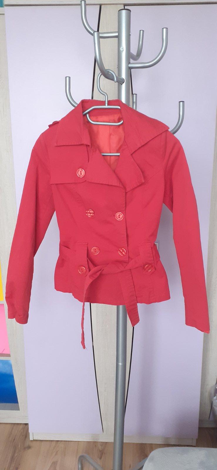 Kabat, cerveno-bordovej farby, s velkou kapucou, s opaskom, vackami, znacky new look. Velkost cca S. V pripade zaujmu premeriam.