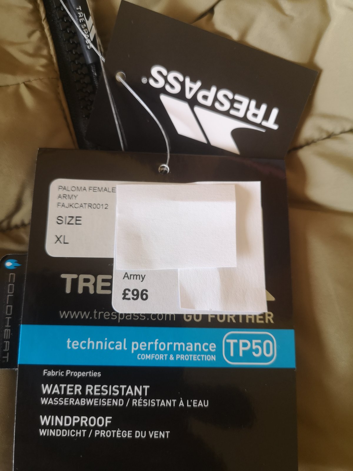 Dámska prešívaná bunda Trespass má prepážky, hlboký golier, 2 vrecká na cvoky, 1 vnútorné vrecko na zips a smaltovaný odznak.