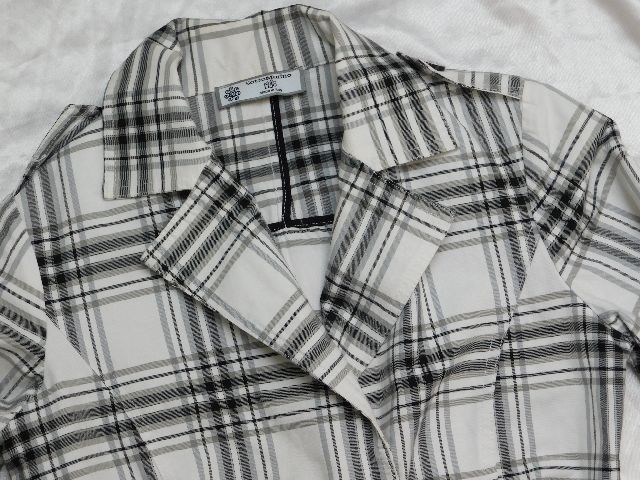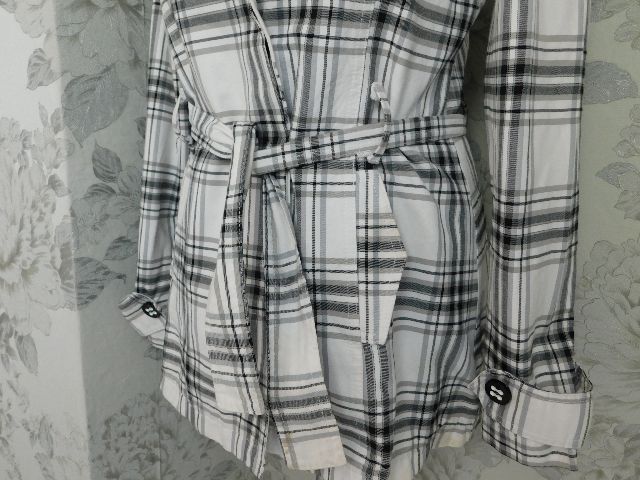 Luxusny karo kabatik/plašt,bielo/čierno/šedej farby,zapinanie na zips prekryte gombikovou legou,s opaskom,vypracovany.53%cotton,47%polyester.super stav. se16