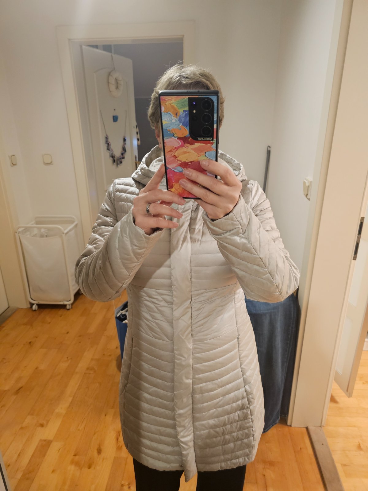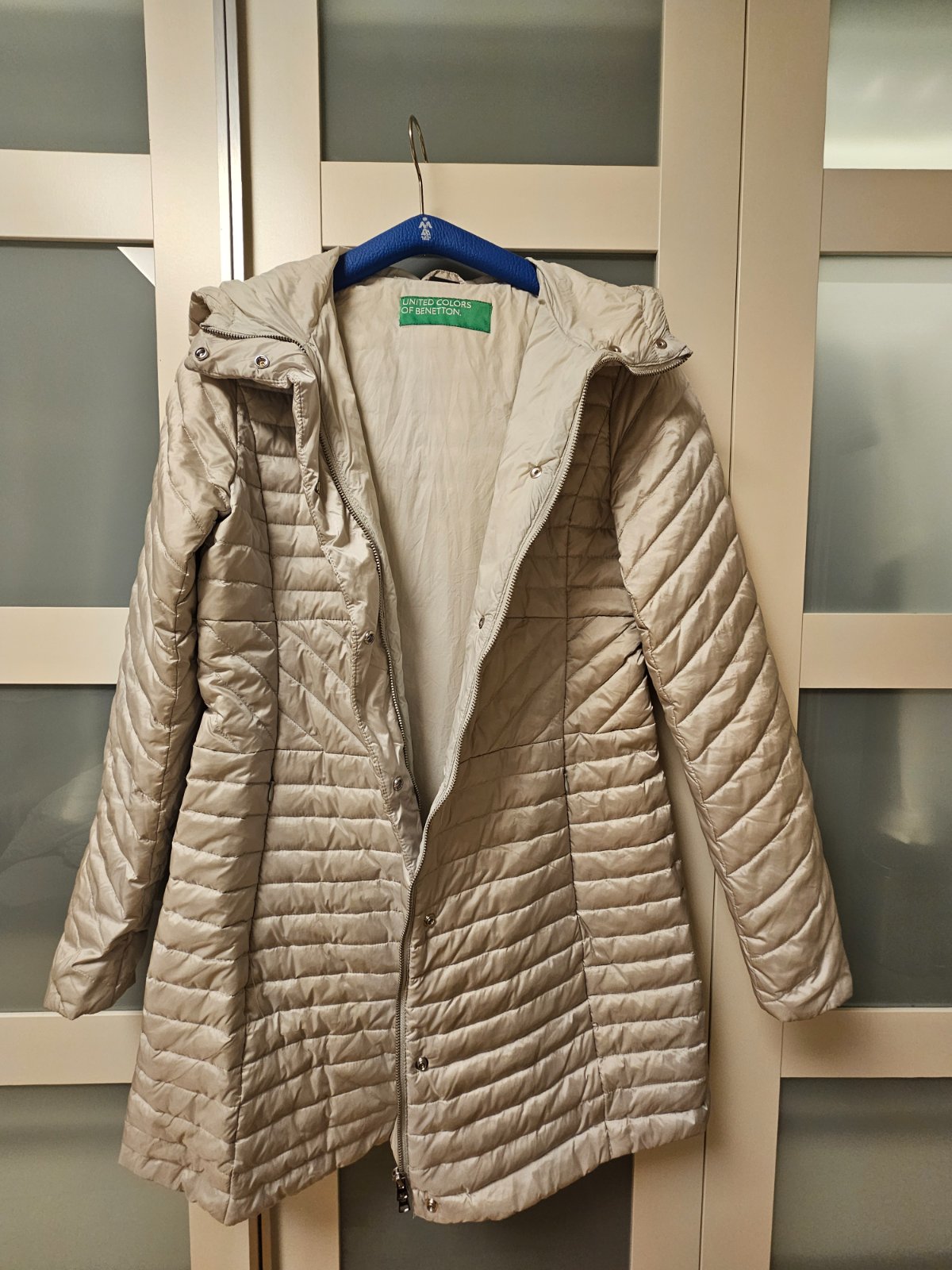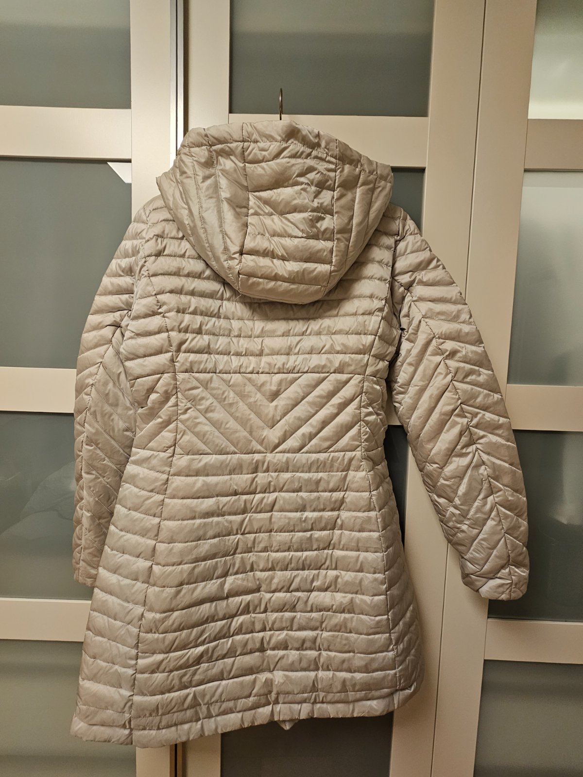 Veľmi pekná s kapucňou, bez poškodenia. Mne je už úzka.