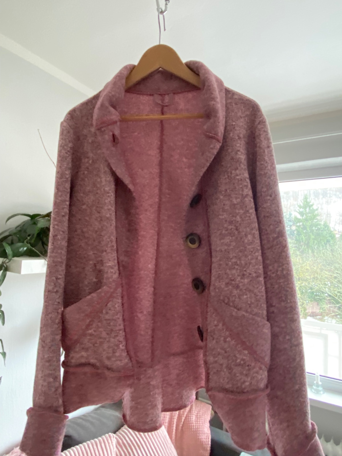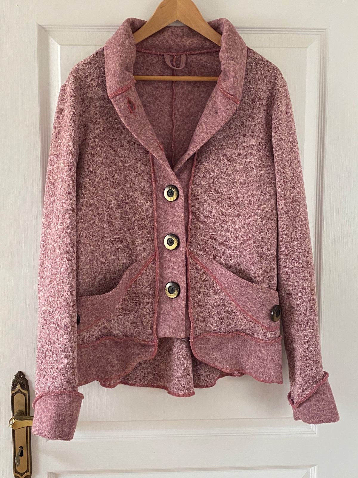 Krásny ružový kabátik kvalitnej českej značky pre ženy. 100 percentný stav. Kvalitný mäkučký materiál. Kvalitne vypracované detaily. Sedí na veľkosť L – 40, 42