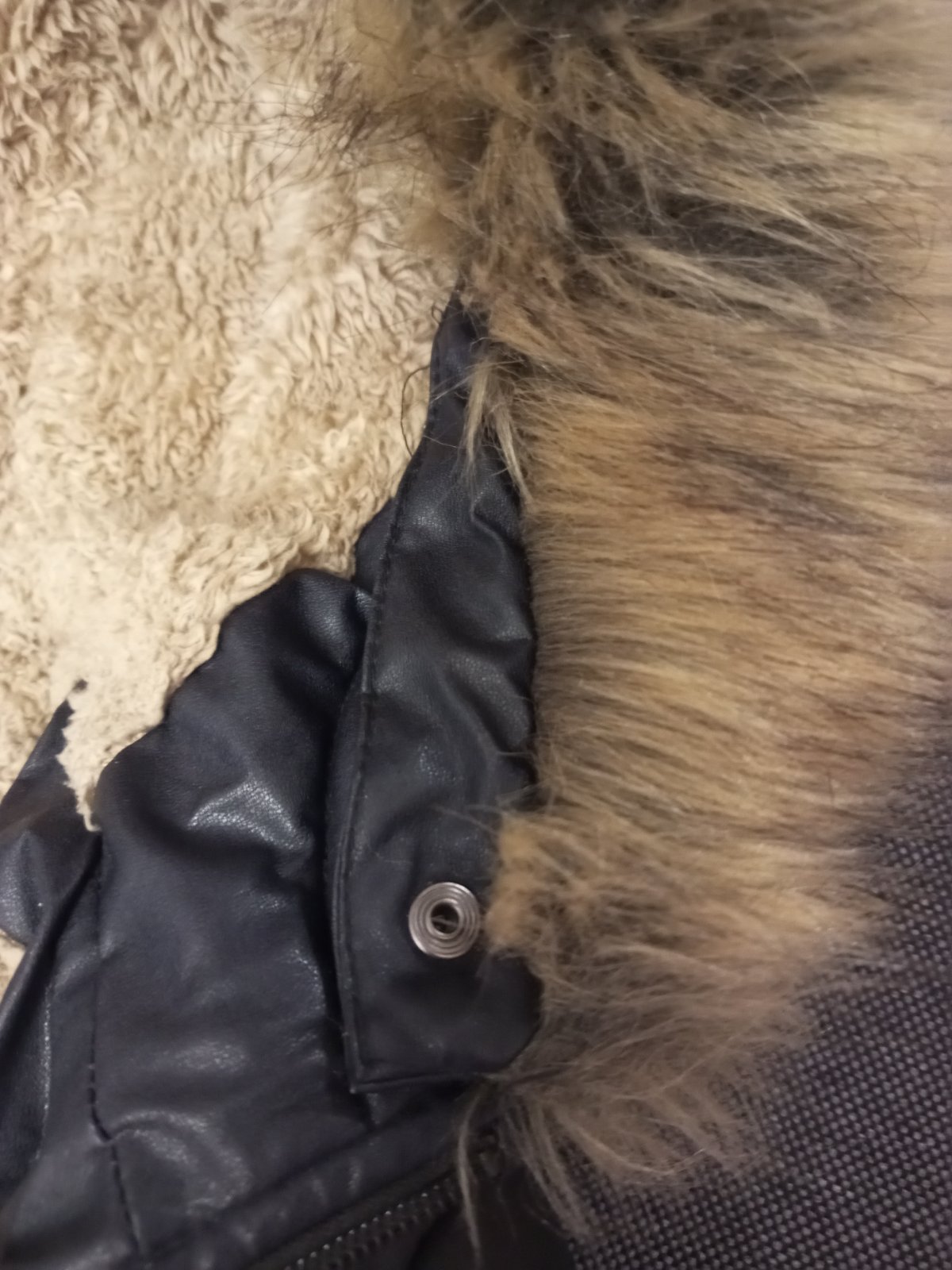 Predám nosenu bundu závady:chýbajúci gombik( možnosť presit ten zospodu) a zosuchany zadok vid foto