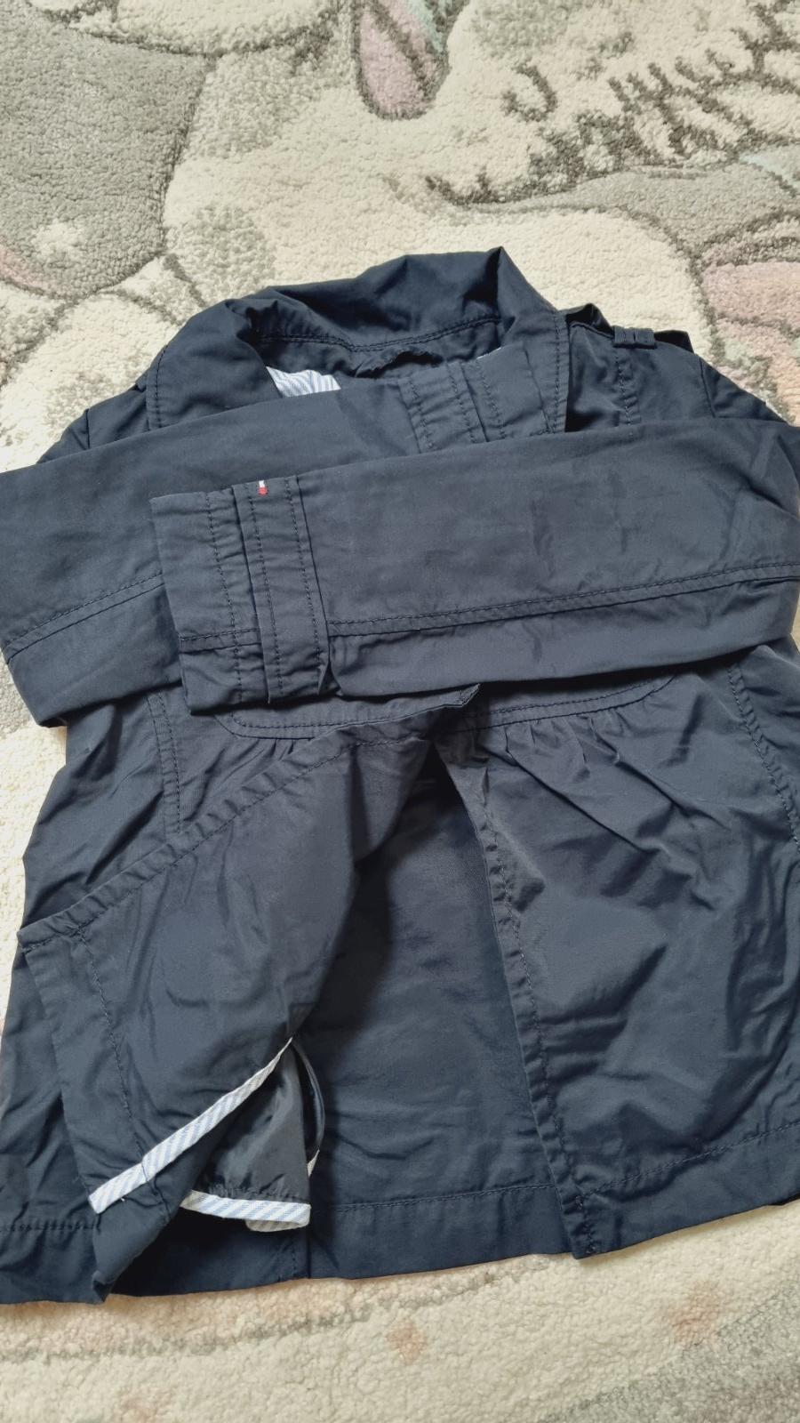 Výborný stav. Tenké sáčko, kabátik, bundička, dcéra nosila aj namiesto mikiny alebo tenkej bundičky. Jemné známky nosenia, stále veľmi pekné. Farba pekná tmavomodrá, jemne lesklá. Na podšívke mi odfotilo žltú škvrnu, ale je to iba na fotke.