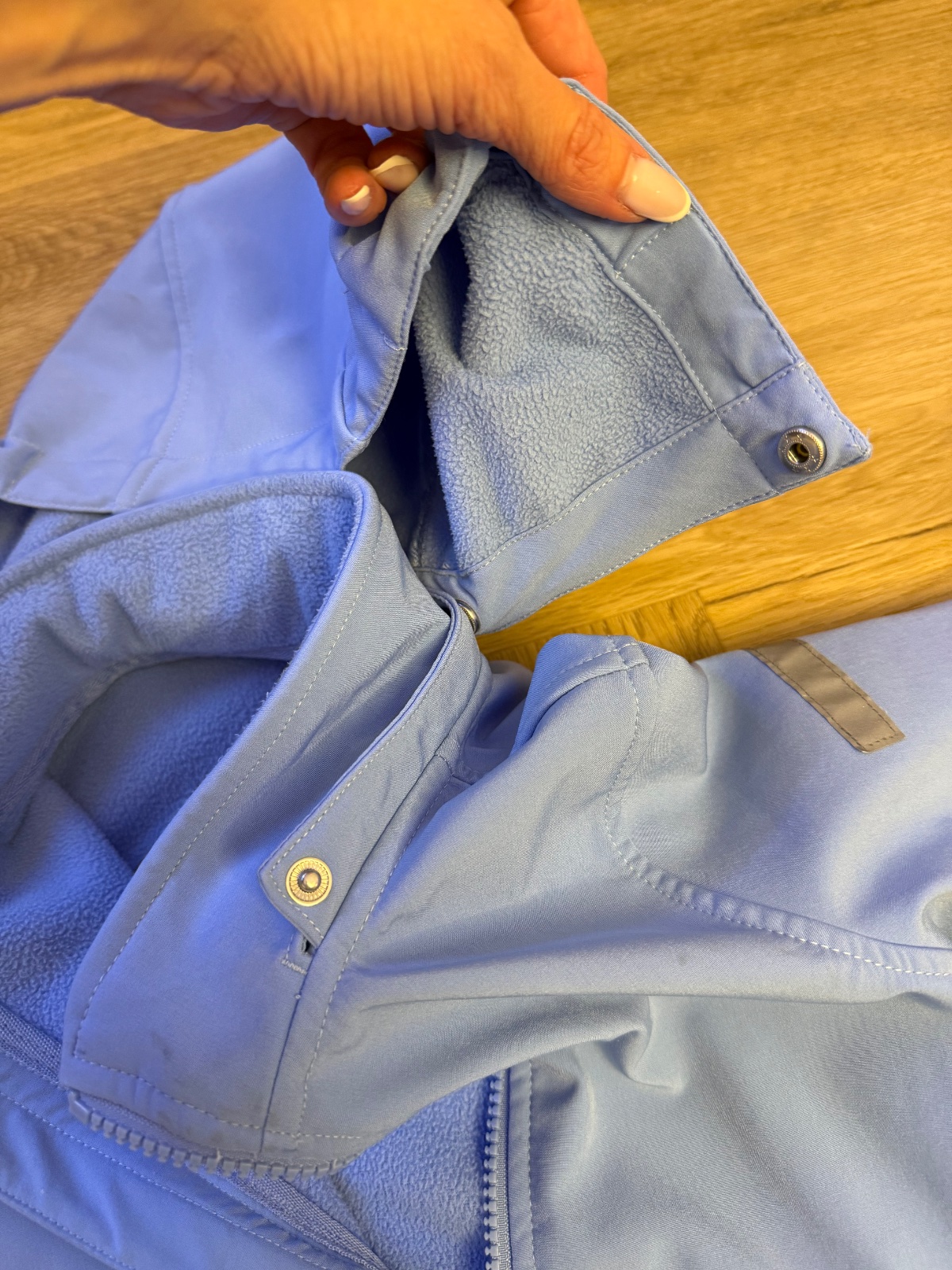 Prechodná bunda, podšitá, s reflexnými prvkami, perfektná do vetra, kapucňa sa dá odopnúť. Bez závad, je ako nová.
