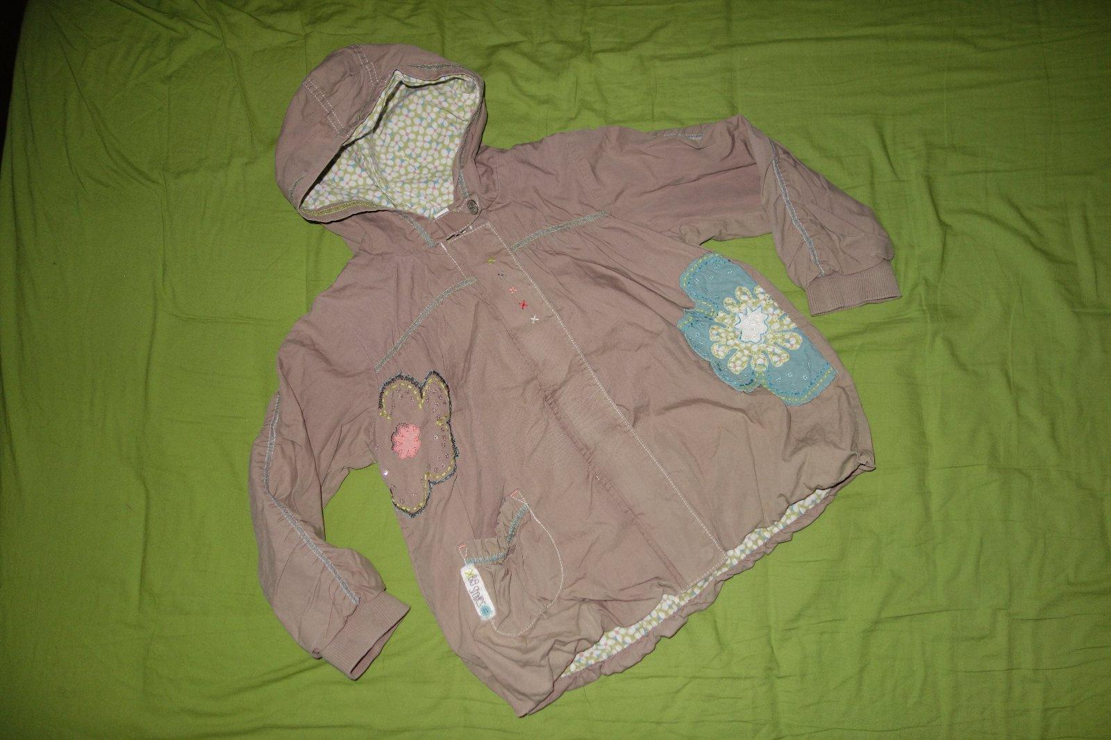 Pekna tenka budnicka v dobrom stave- na farbe vidno pranie. Dole pri zipse je dierka (vid foto), pri noseni vobec nevidno. Je taka bledohneda s nadychom do siva.