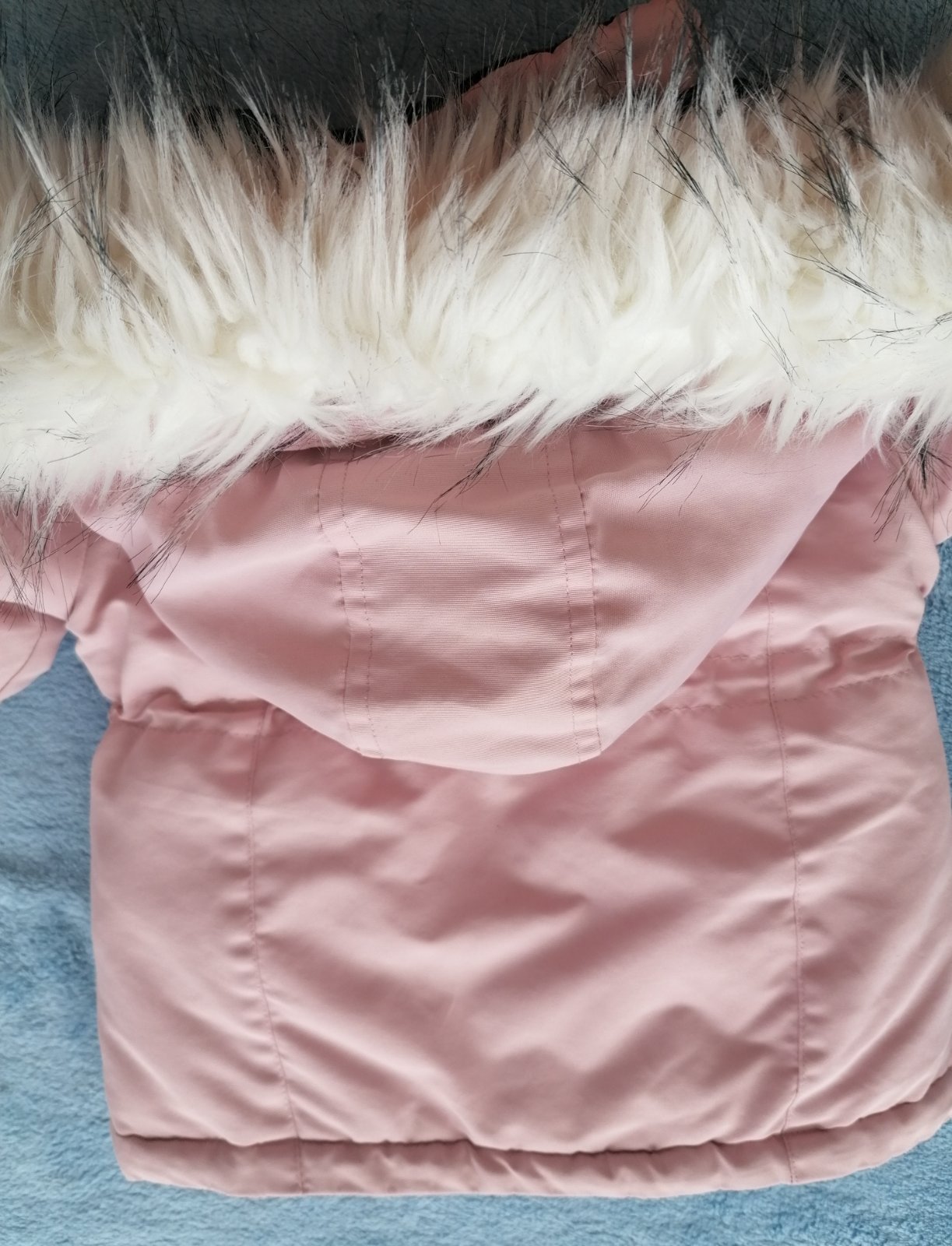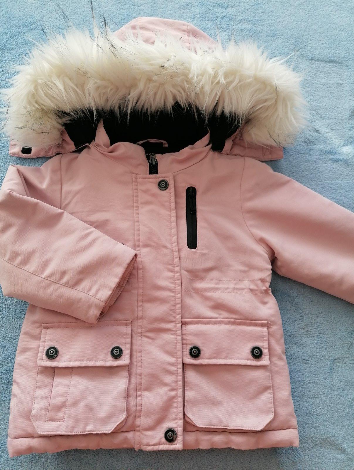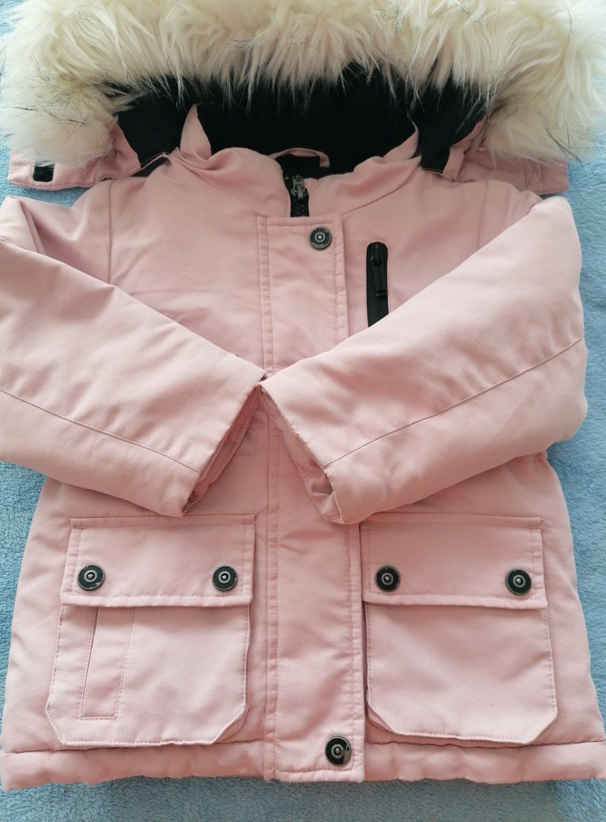 Ponúkam nádhernú bundicku pre malú slečinku. Nosena na striedačku s ďalšími, bežné známky používania. Pri detailnom skúmaní vidno suchnute gombicky a zips a fliacik na vrecku. Inak krásny nosený stav.