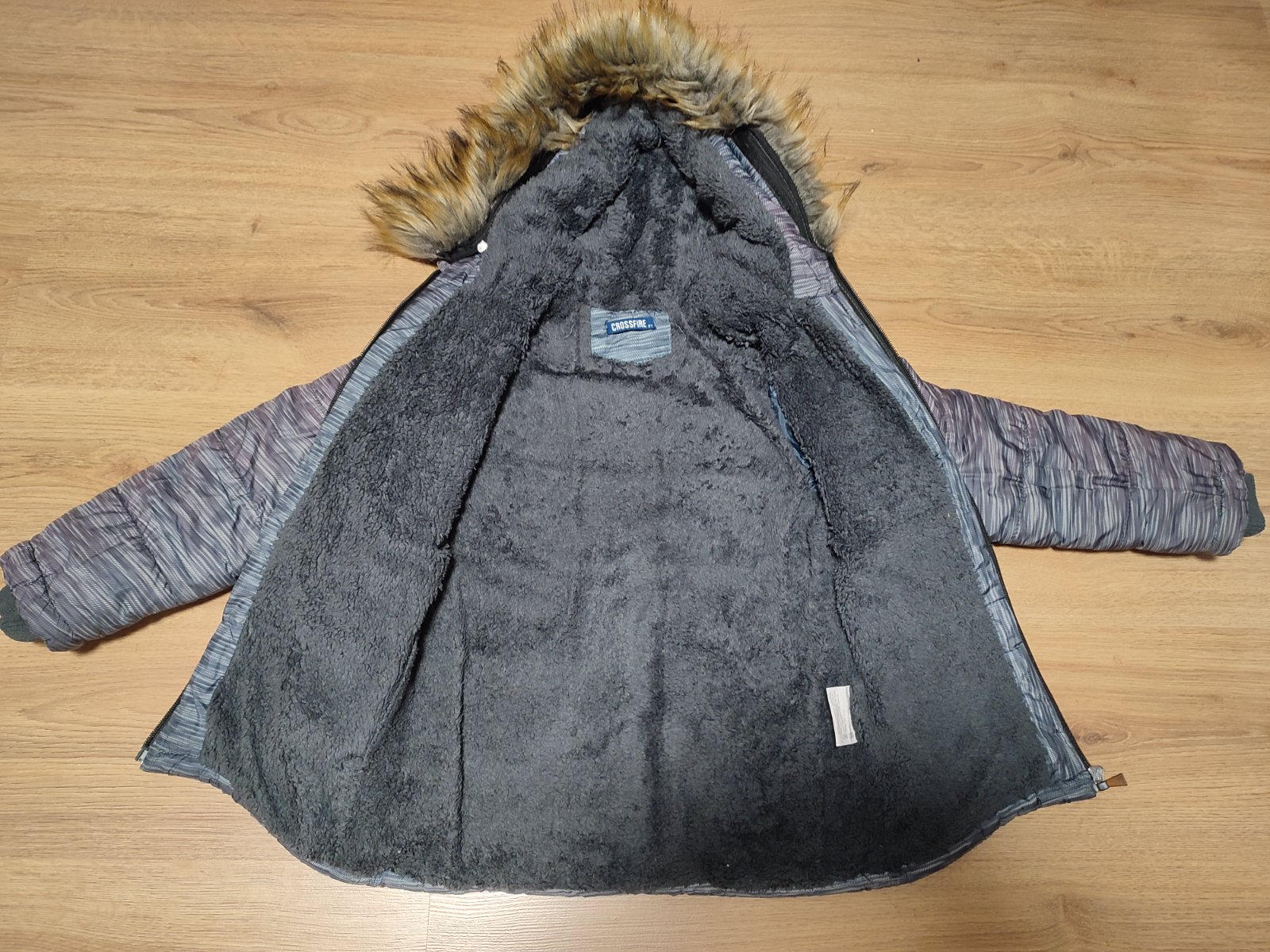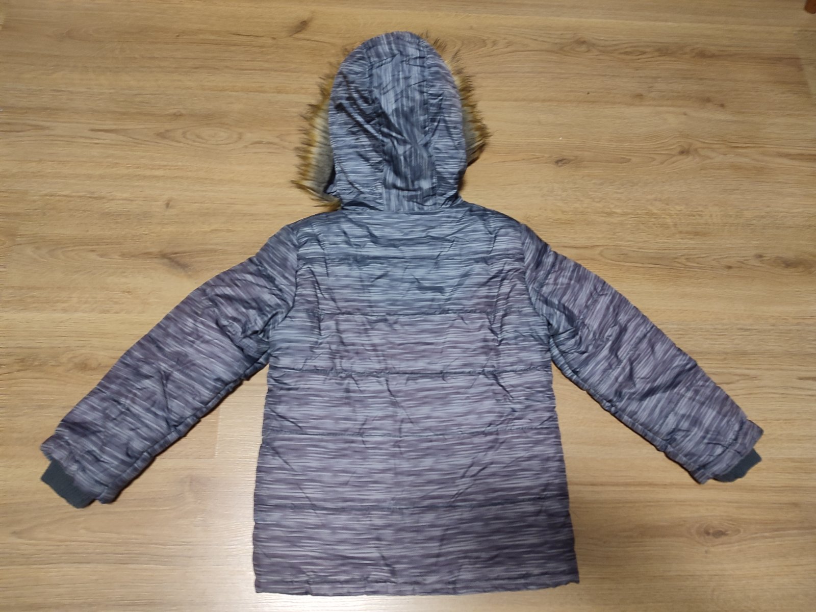 Predám zimnú bundu okolo domu. Farby vyťahané od slnka, vidno aj na foto že už neje celá pekná sivá, ale myslím, že okolo domu sa ponosiť ešte dá. Ine poškodenie nemá žiadne. Veľkosť píše 8rokov. Cena je bez poštovného