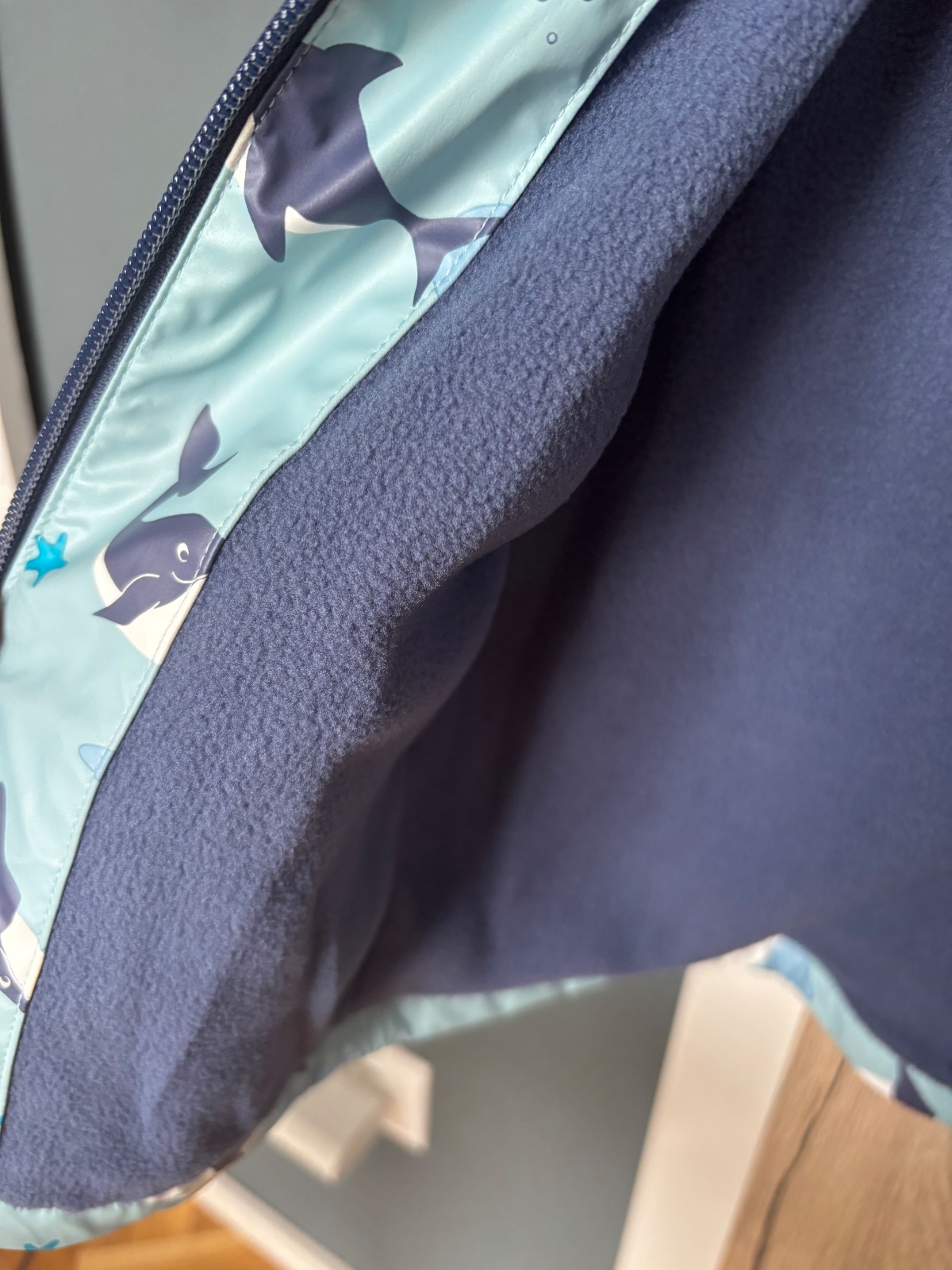 Pogumovana a zvnutra fleesova podsivka.