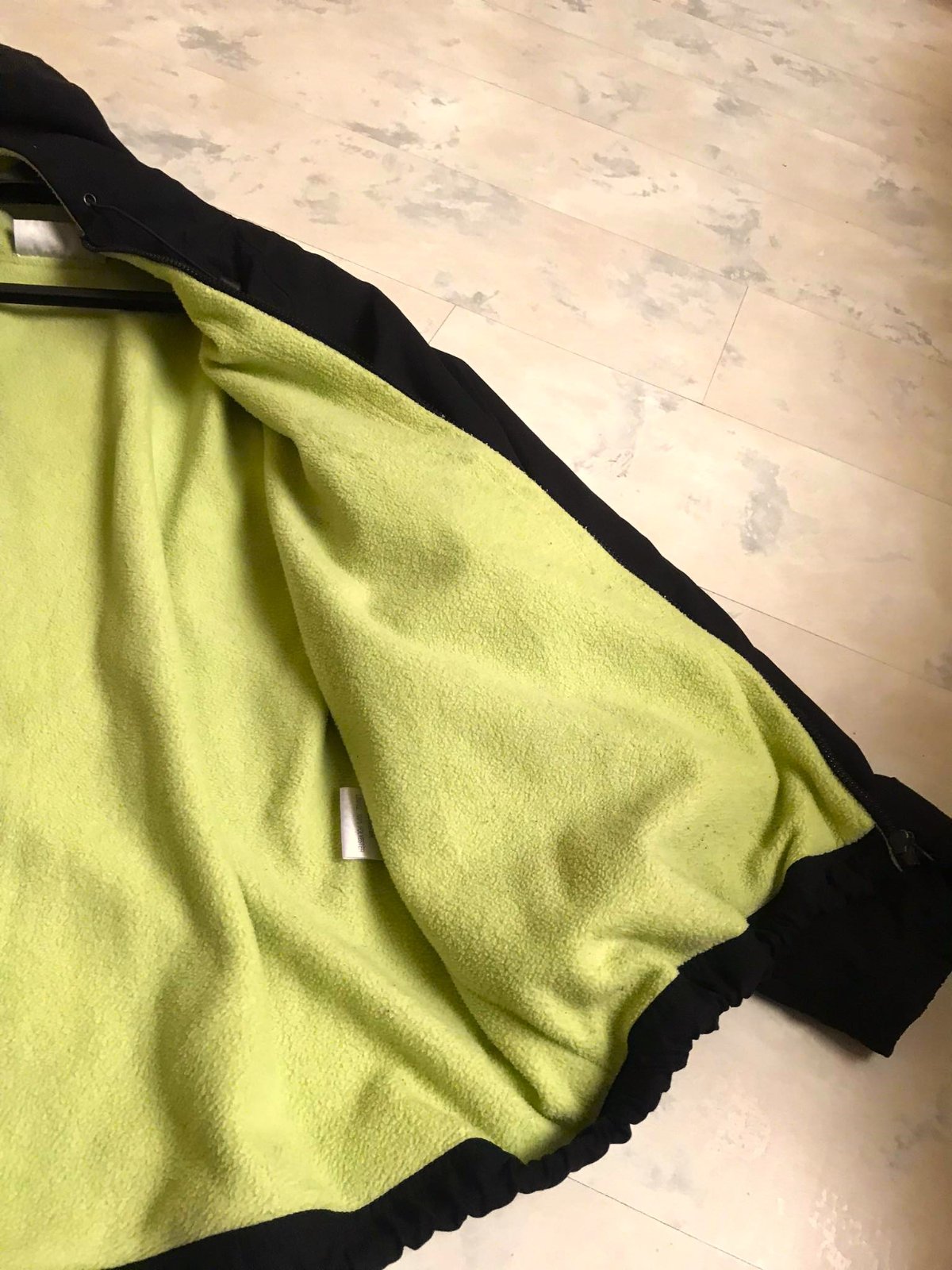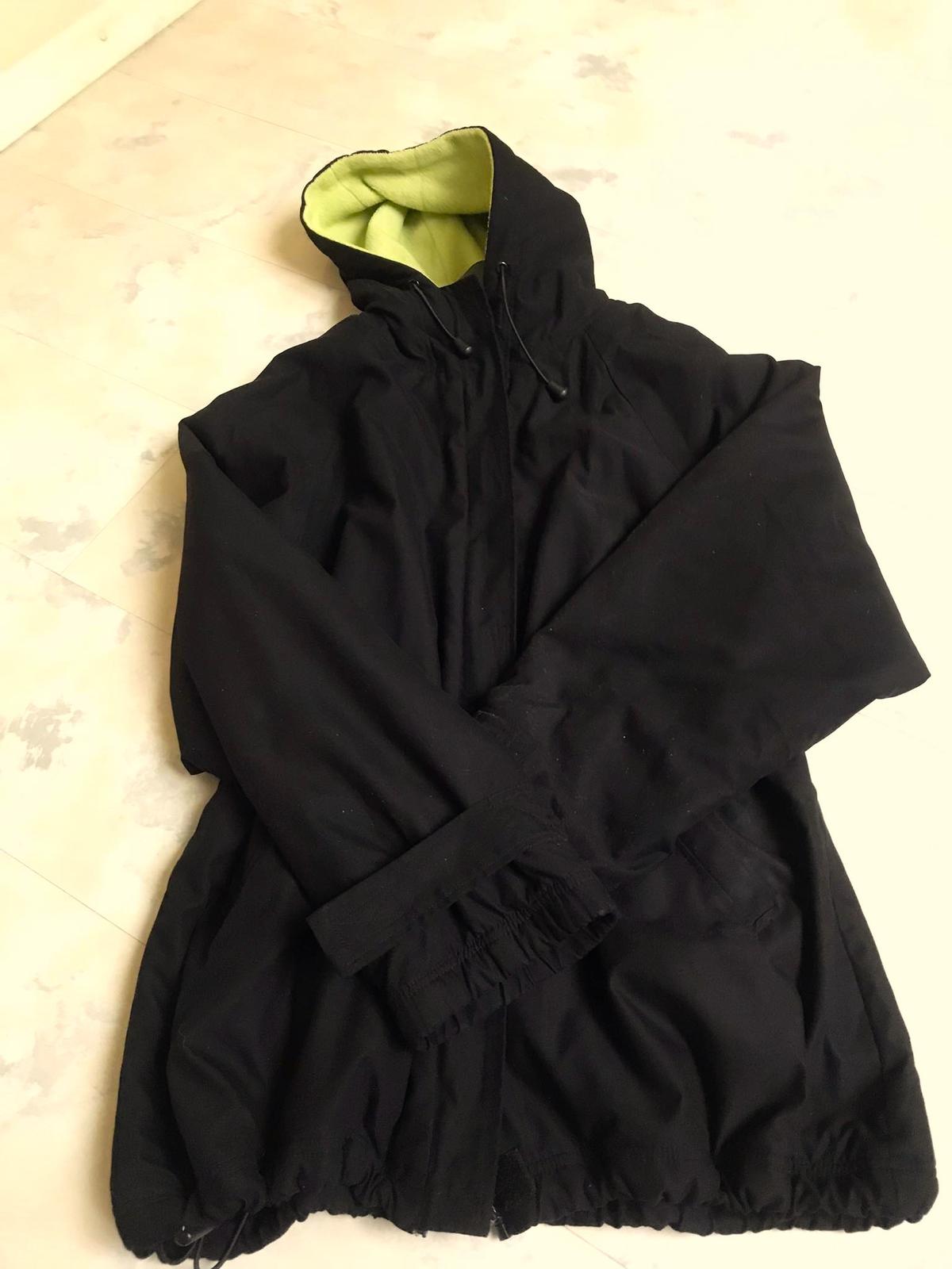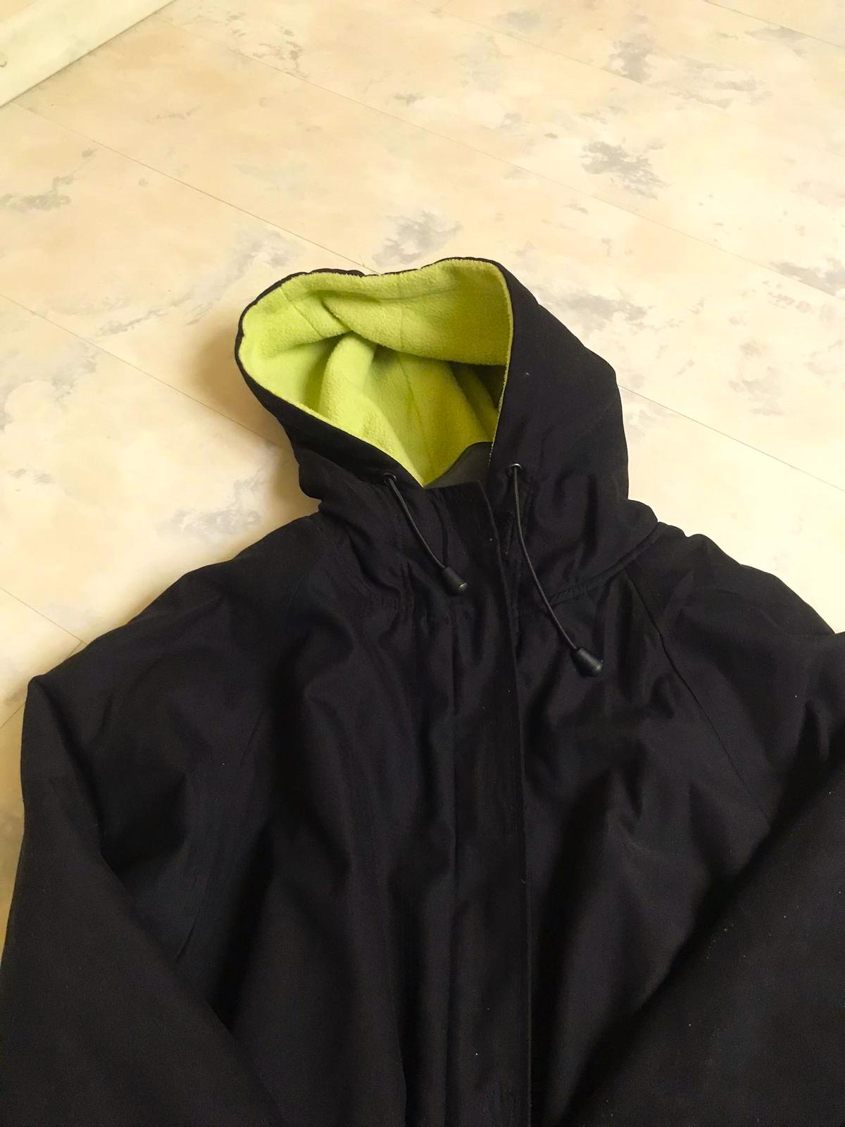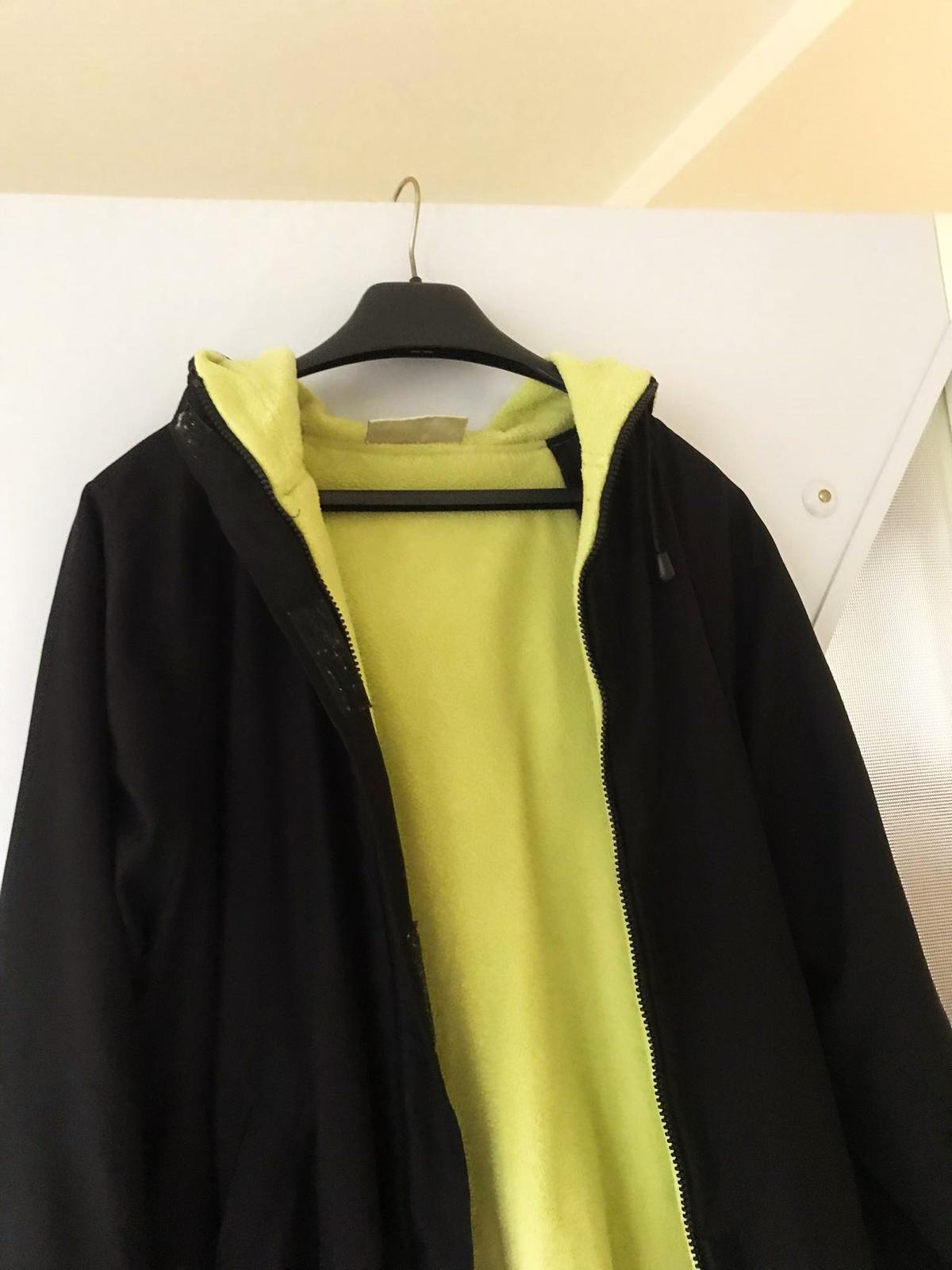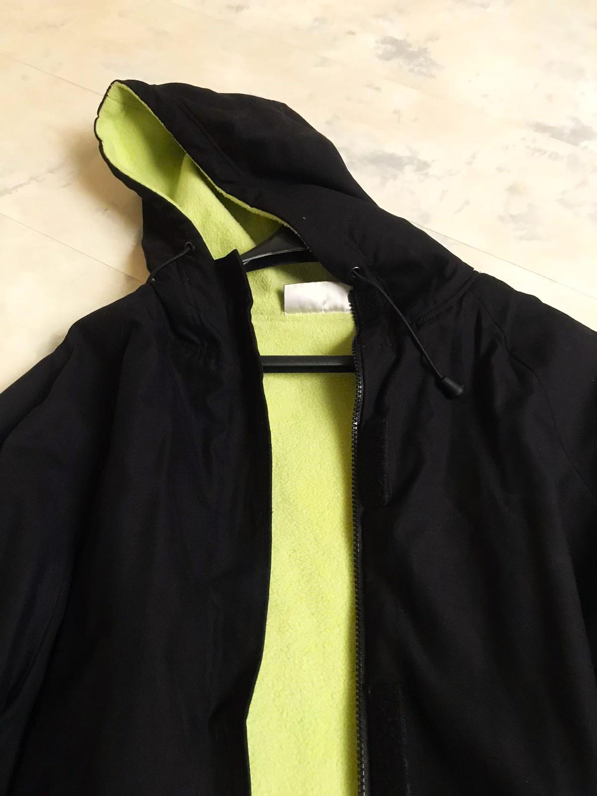 ľahká teplá unisex vetrovka z kvalitného materiálu - mikrovlákno,vhodná aj ako prechodná,ale ja som ju nosila v klasickej zime - ak nie sú mrazy,nekrčí sa,výborne sa perie,zateplená farebným flisom - farba banánovo žltá/zelenkavá, v rukávoch je futro - nie flis,dole sa dá upravit a stiahnuť do šnúrky ,aby nepodfukovalo,raglánový rukáv,na rukávoch upínače na suché zipsy proti podfukovaniu,zapínanie na zips - skrytom na suché zipsy,