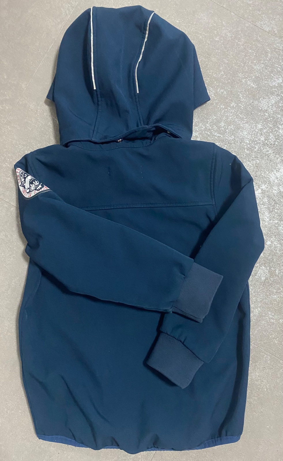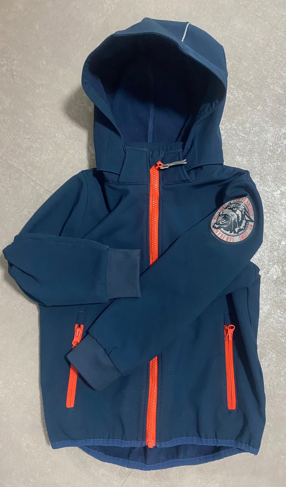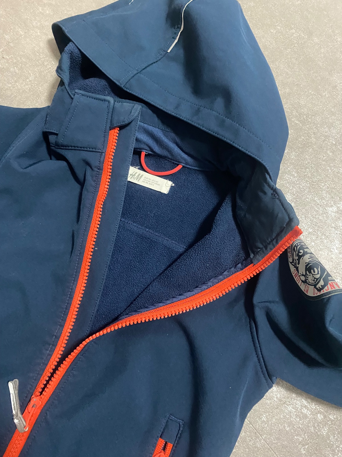 Bunda H&M. Zateplená, odopínatelná kapucňa-Pekný nosený stav. Červenú bundičku do dažda Lupilu 110/116 Darujem k nákupu.