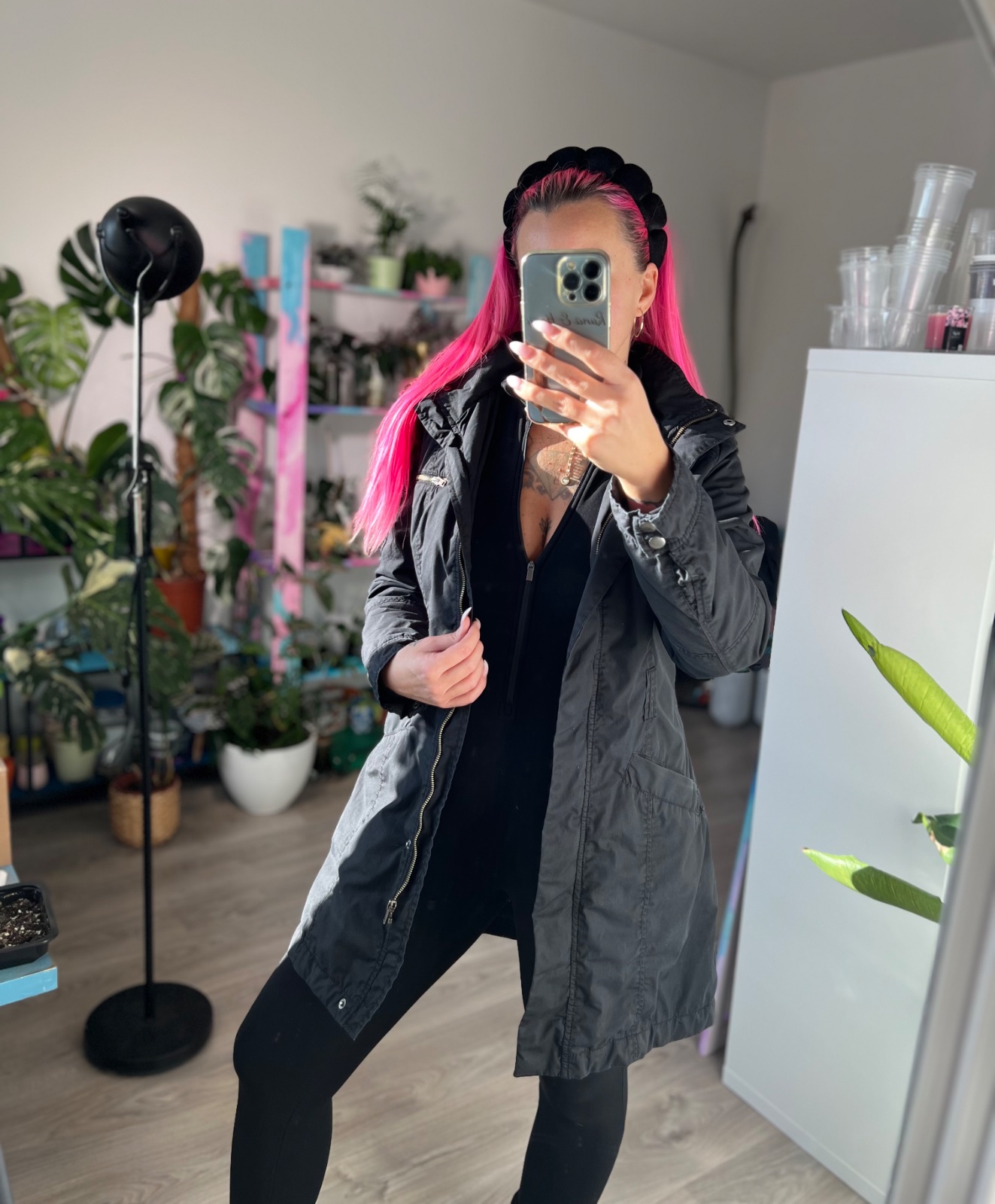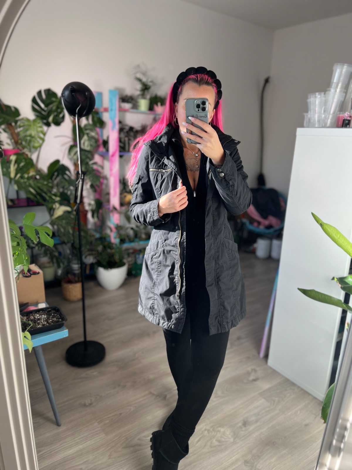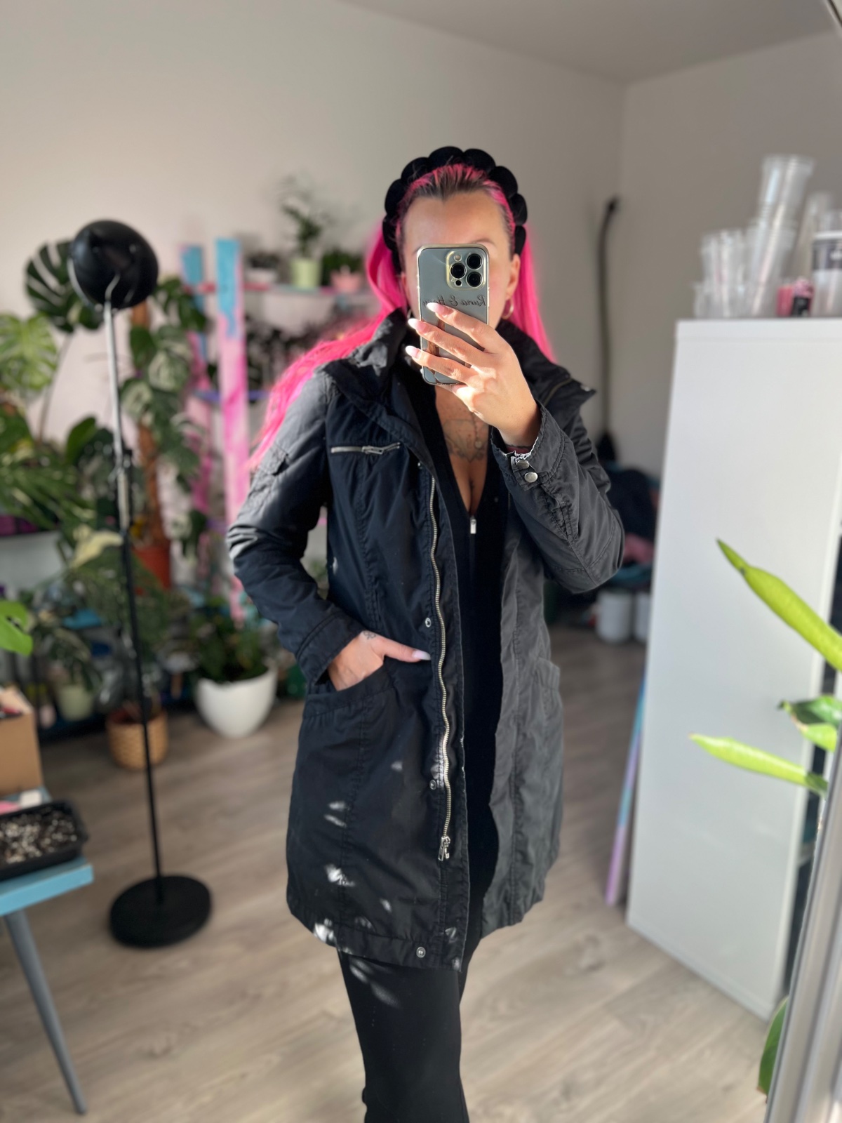 Veľmi tenká bundička , vhodná na leto keď je chladnejšie. V peknom stave. Veľkosť sadne na S / 36 , ajked je uvedená 42 .