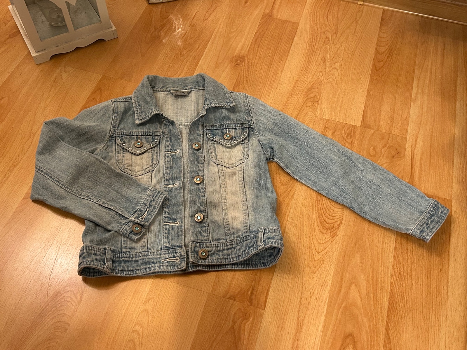 Dievčenská riflová bunda, veľ.128, Next, bledomodrá, málo nosená, cena 6eur+poštovné
