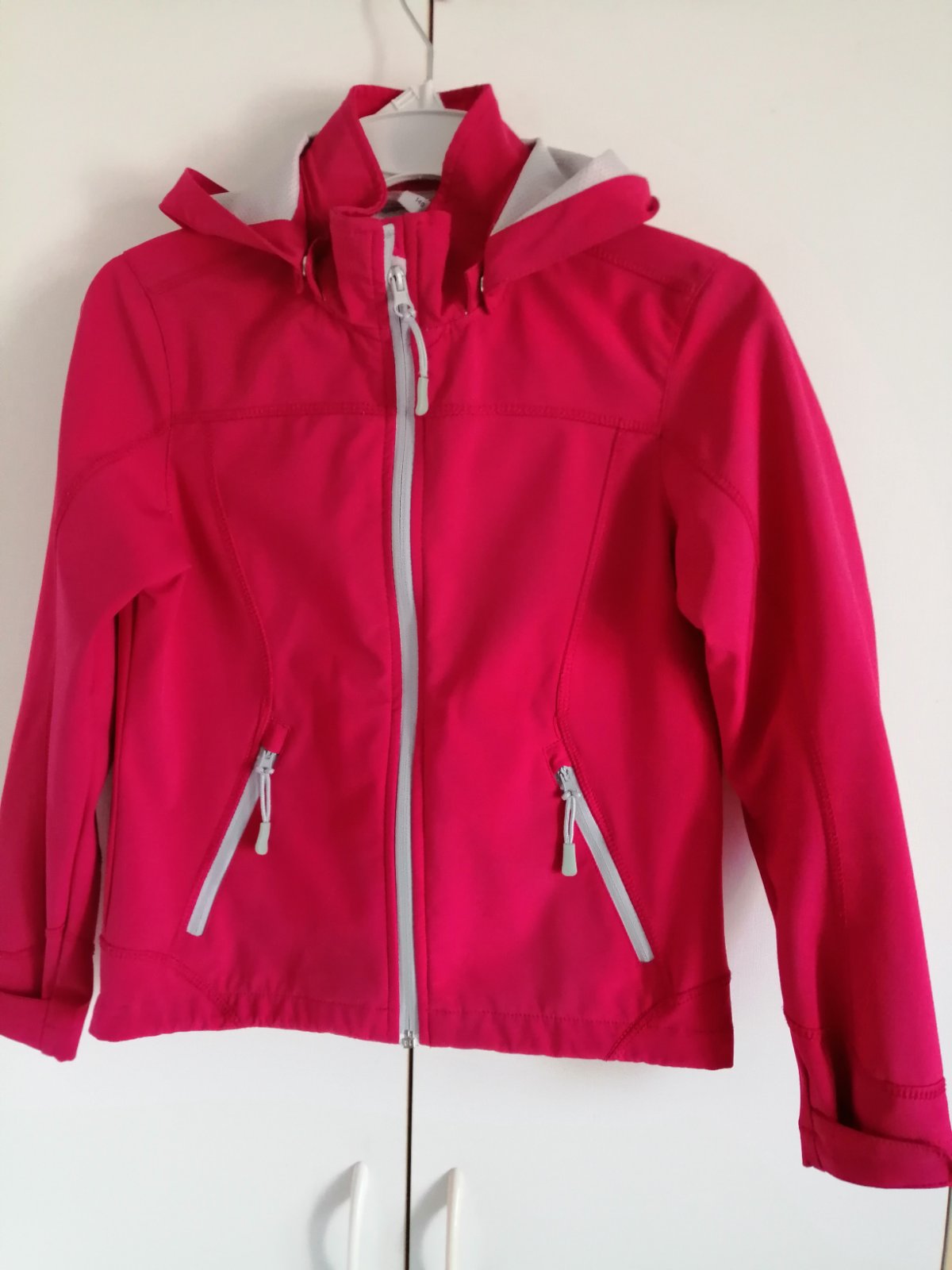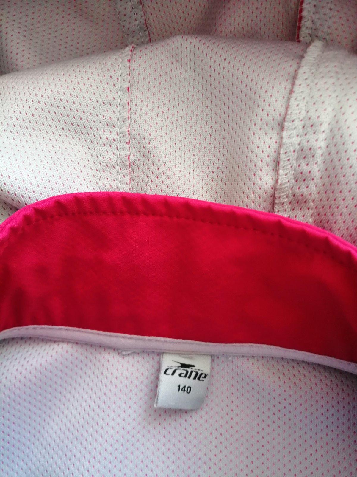 Značková športova bundicka CRANE pre dievčatka, 1 x oblečená, podsita je pevnejsim sietovym sedym materiálom, obvod hrudnika je 84 cm, rukavy 51 cm a dĺžka je 52-54 cm vzadu