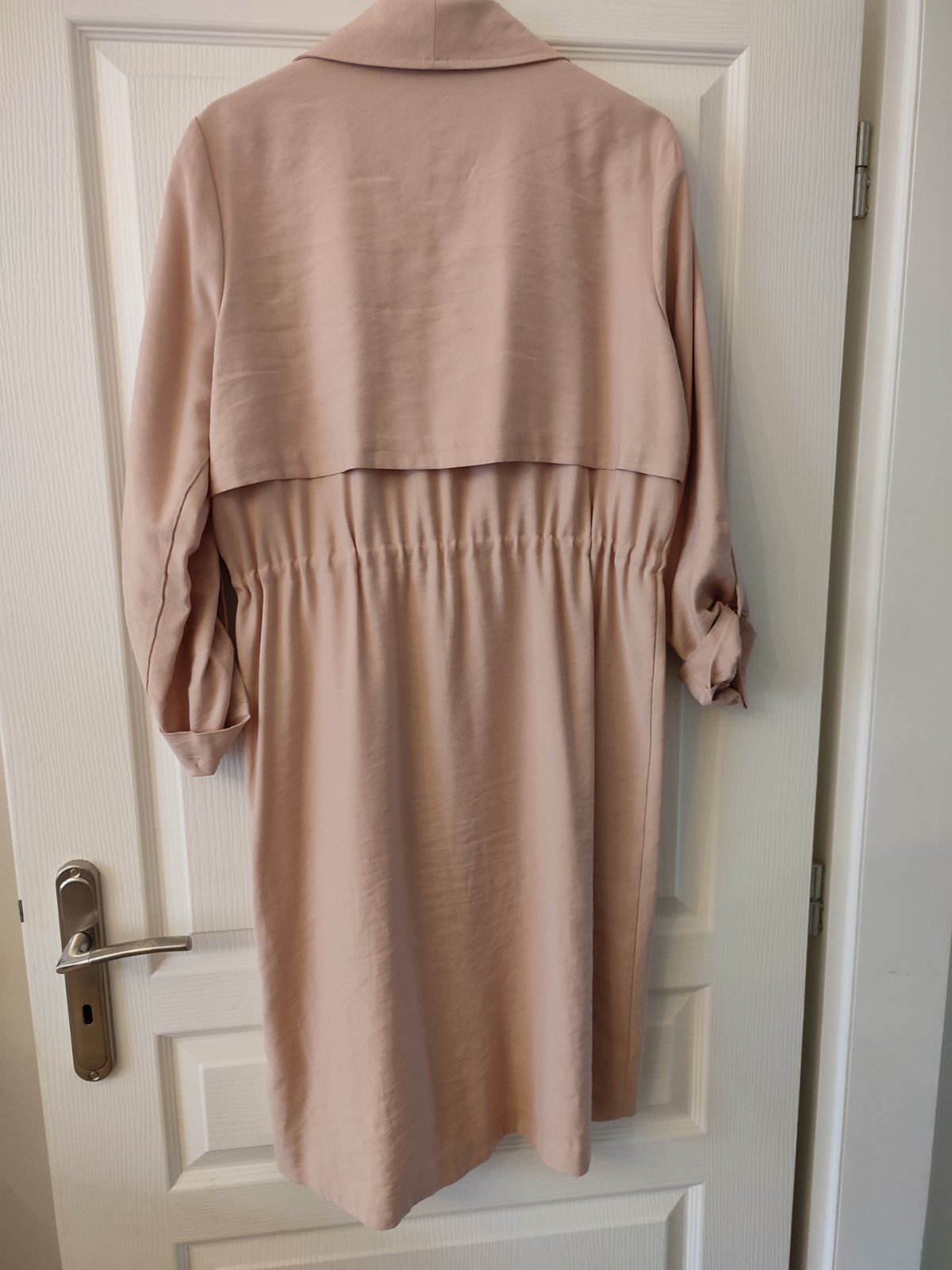 Predám nekrčivý kabát bez podšívky. Pôvodná cena bola 59 EUr. Mala som ho asi trikrát oblečený. Je to tenký kabát vhodný na jar a skorú jeseň. Celková dĺžka je 95 cm. Cez prsia 92 cm. Pas 80 cm, bo...