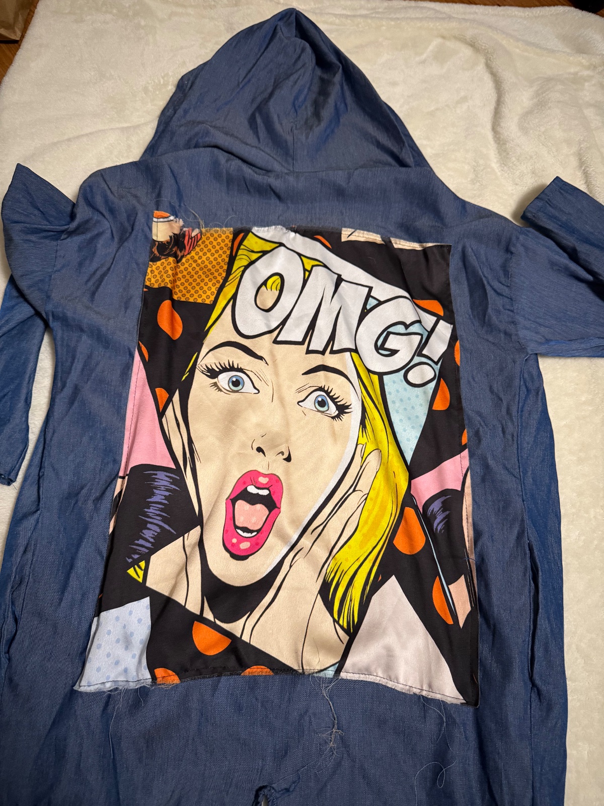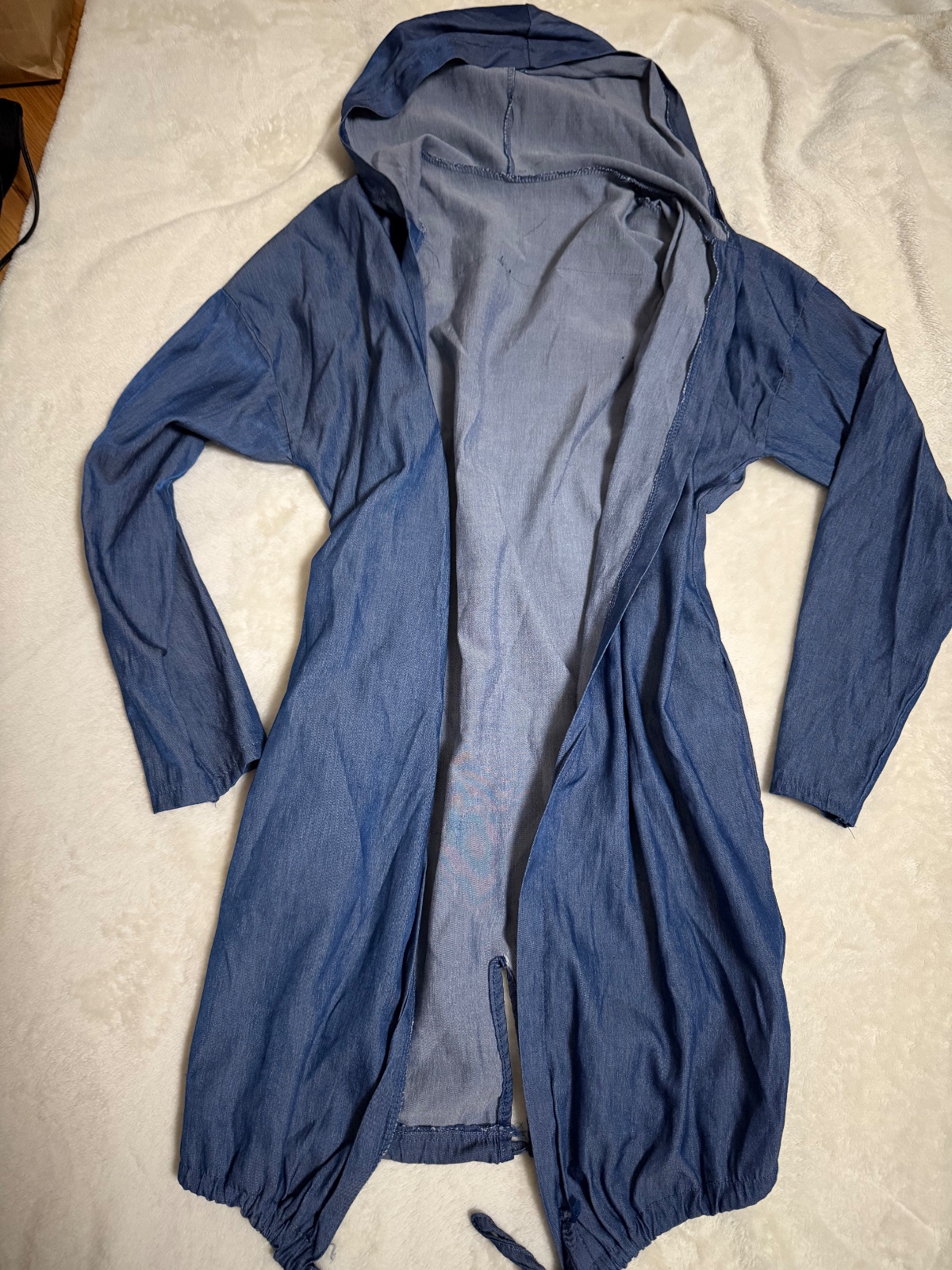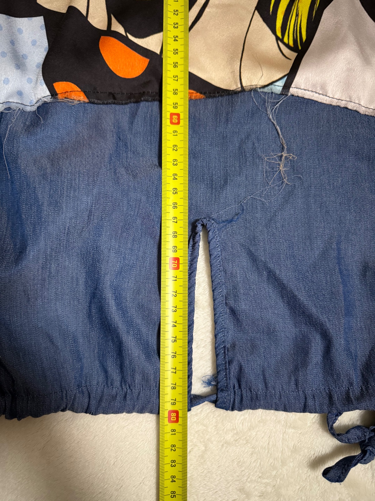 Pár krát oblečená, jemná akoby riflovina. Neviem presne aký je to materiál. Vhodná na jar leto