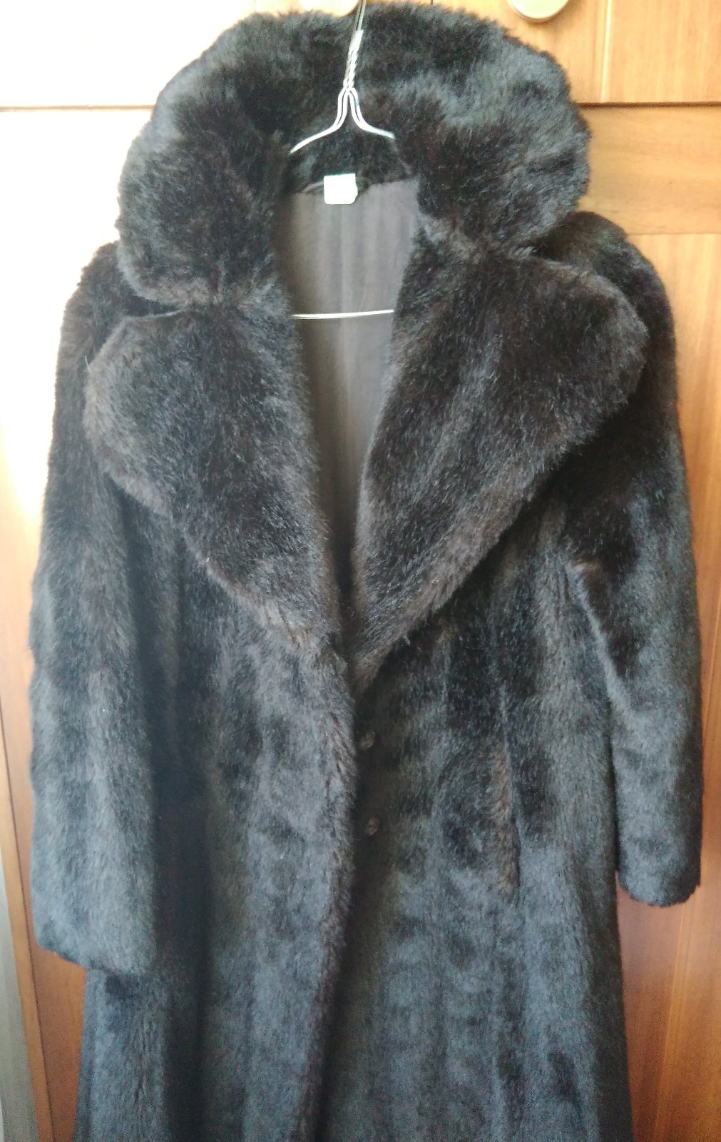 z umelej norky, zapínanie na 3 gombíky, bočné vačky. dlhý 120 cm, rukáv 60 cm, veľ 38