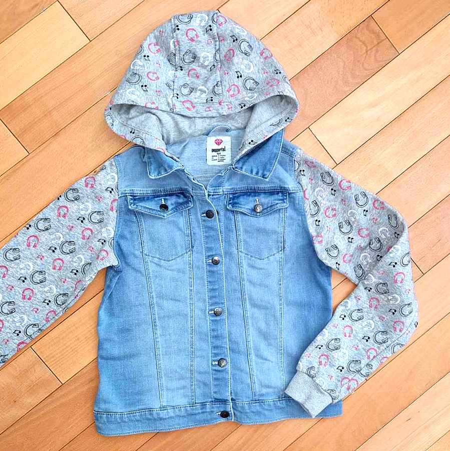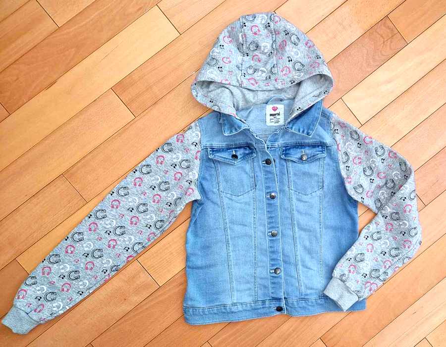 Velkost 158/164. Riflová bunda s kapuckou.....oblečená pár krá, 100% stav. Šírka pod pazuchami je cca 40-41cm. Dlžka od ramena 50-51cm