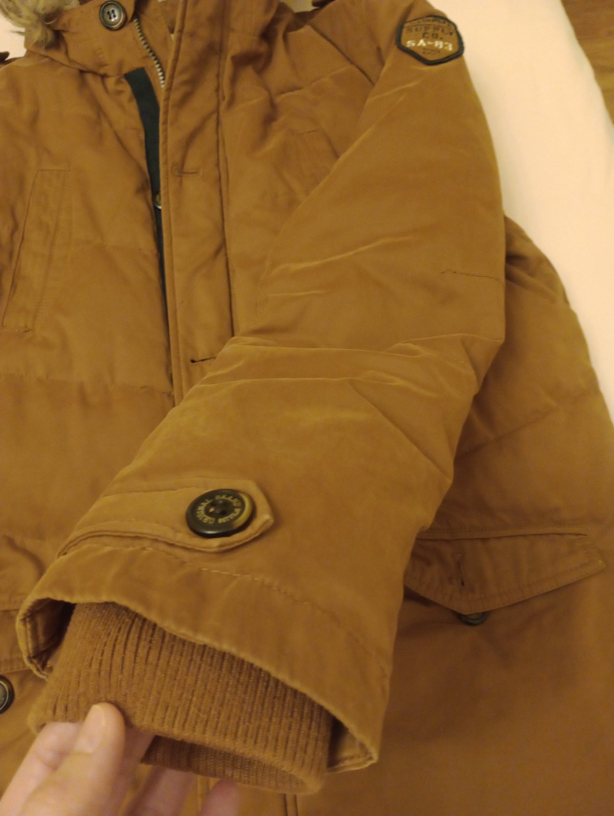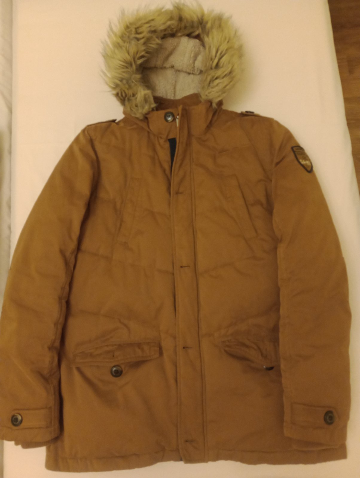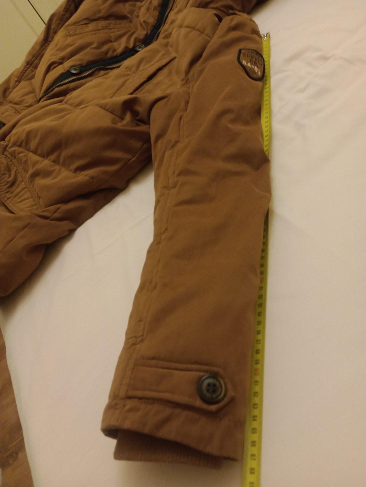 Teplá bunda bez poškodení, rozmery na fotkách. Kapucňa napevno, cica - možnosť dať dole, viď foto. Zips + gombíky, manžeta na rukávoch