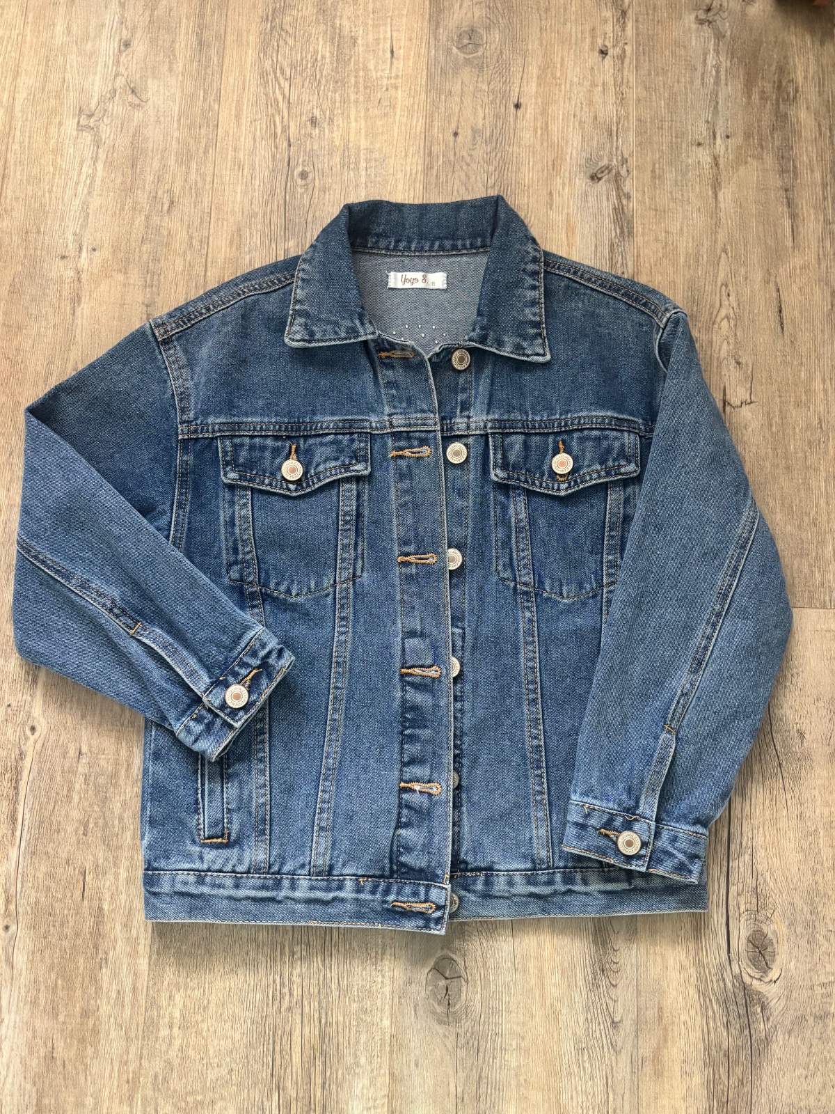 Nadherna vybijana riflova bundicka.Top stav. Velkost XS,S. Znackova znacka rossodisera. Povodna cena 90 eur. Minimum nosena cca 3-4 krat. Sirka v podpazi 40cm, uplne dole 33 cm. Celkova dlzka od kr...