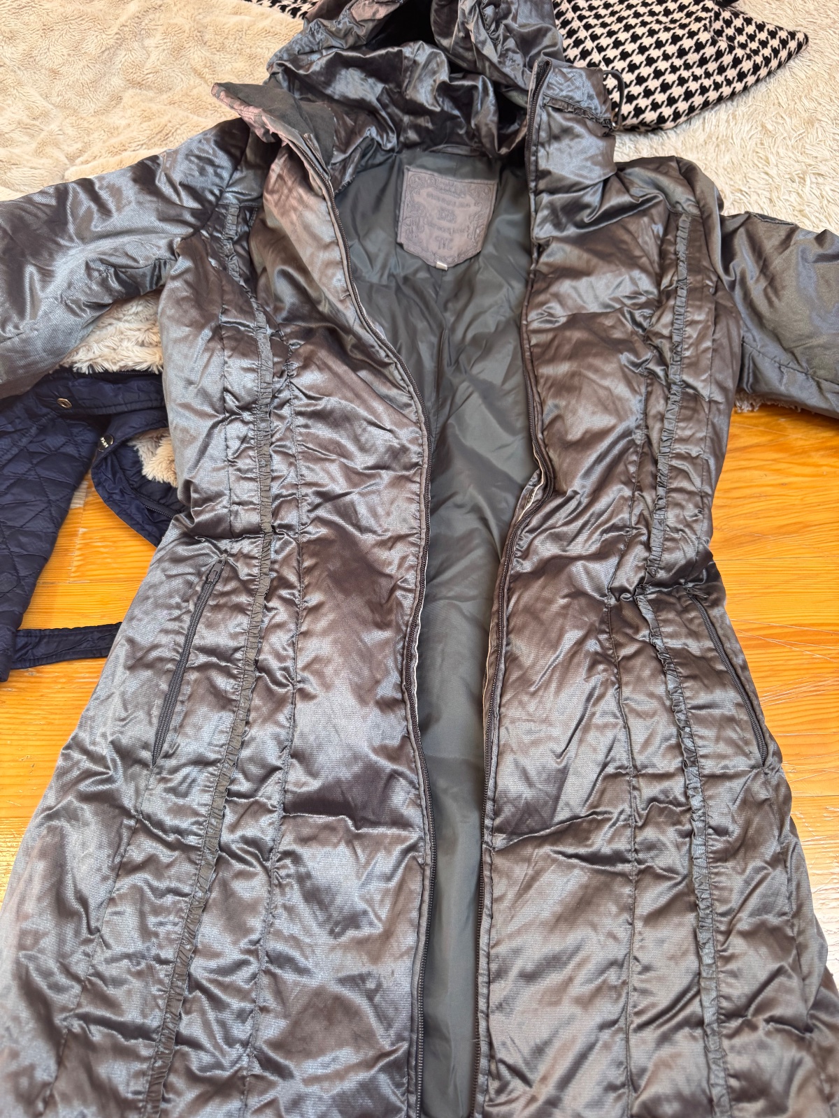 Krasna kvalitna preprackvana bunda,je velkost s ale kludne aj 158 dievcenska,bunda stala 170 eur,oblecena nola max -0 krat.odporucam na foto tak nevyzera ale je to krasna taka ako keby metalicka farba