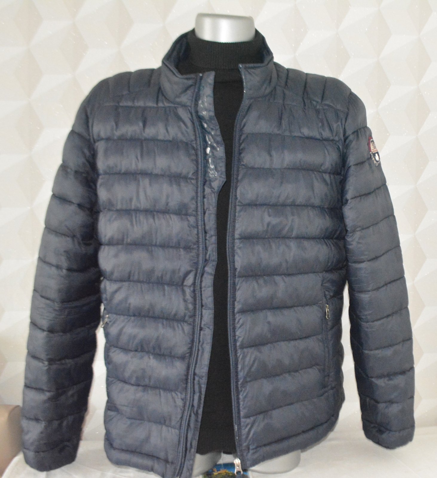 Pánska bunda Napapijri, veľ. XL/XXL - rozmery: dĺžka 72cm, pod pazuchami 2x65cm, rukáv od krku 84, od pleca 68 a od pazuchy 55cm. Farba tmavá modrá - navy blue.