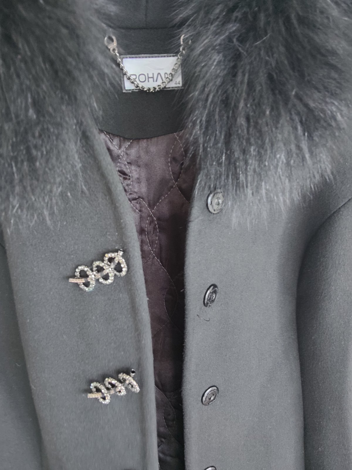 Elegantný dámsky vlnený kabát s kožušinkou veľ. 44