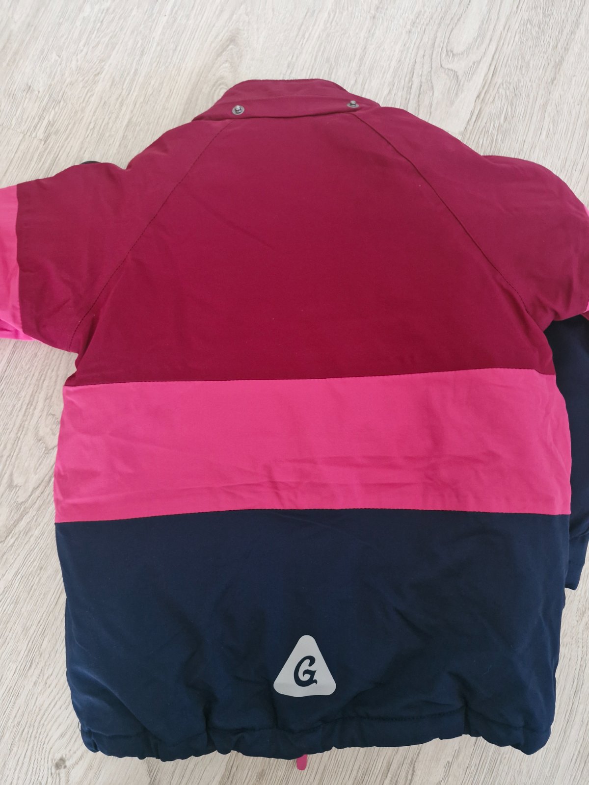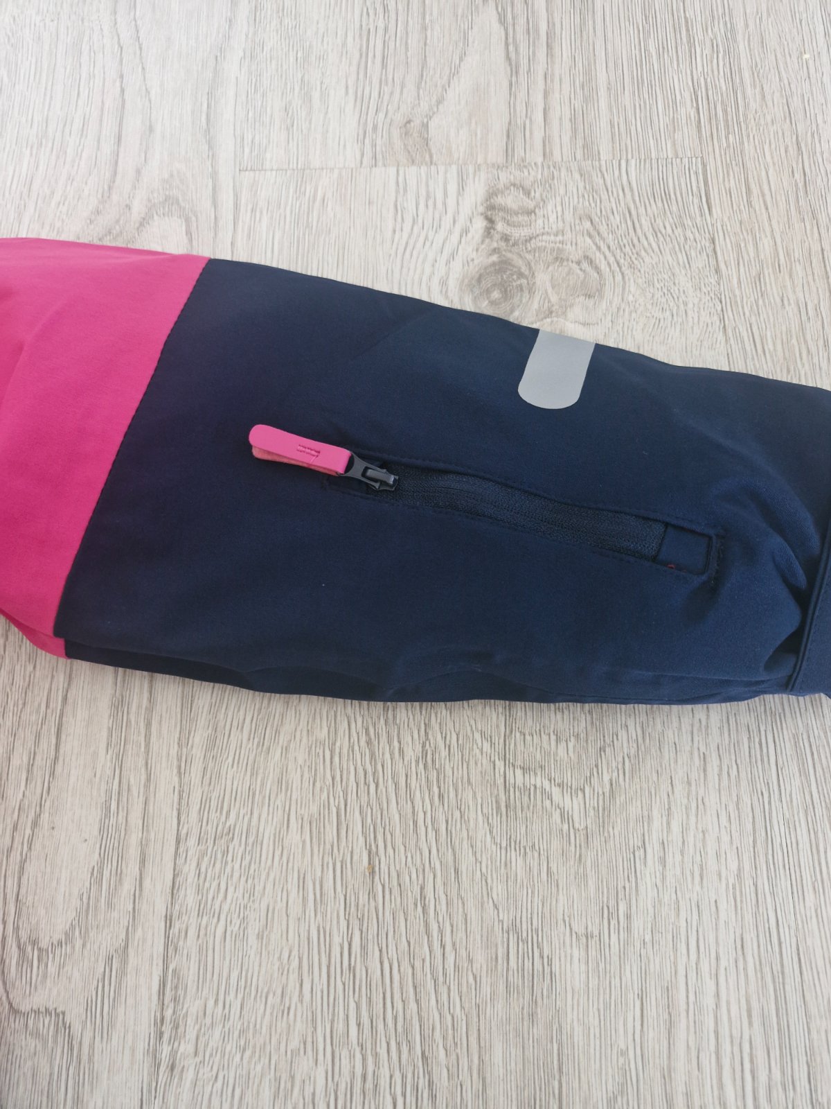 Pár x oblečená bunda je veľkosti 128-134, peknej tmavoružovej farby, nie sýtej. Je bez poškodenia, s odopínateľnou kapucňou. D-50cm,podpazušie-48cm,rukáv - 47cm