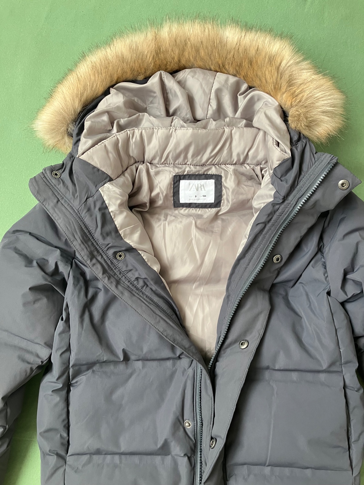 Krásna a teplučká páperová bunda. Oblečená len párkrát (syn nosil celú zimu lyžiarsku), takže ako nová. Vrecká na zips, kapucňa sa nedá odopnúť. Strih je trochu širší. Šírka pod pazuchami 50-51 cm. Dĺžka od krku (pozri foto) 58 cm.