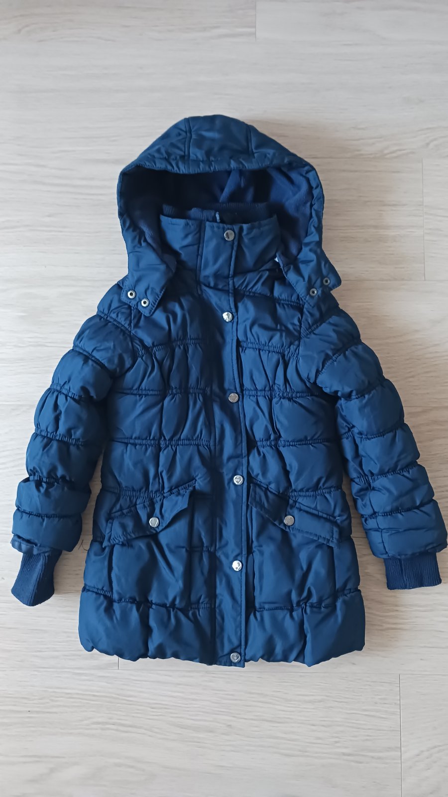 velmi pekná bundička na zimu máličko nsená máme toho vela teplučka píše velkosť 122 ale my sme ju nosili ked mala dcérka velkosť 110/116 pomeriam v prípade záujmu na kapucke chyba jeden cvok ináč j...