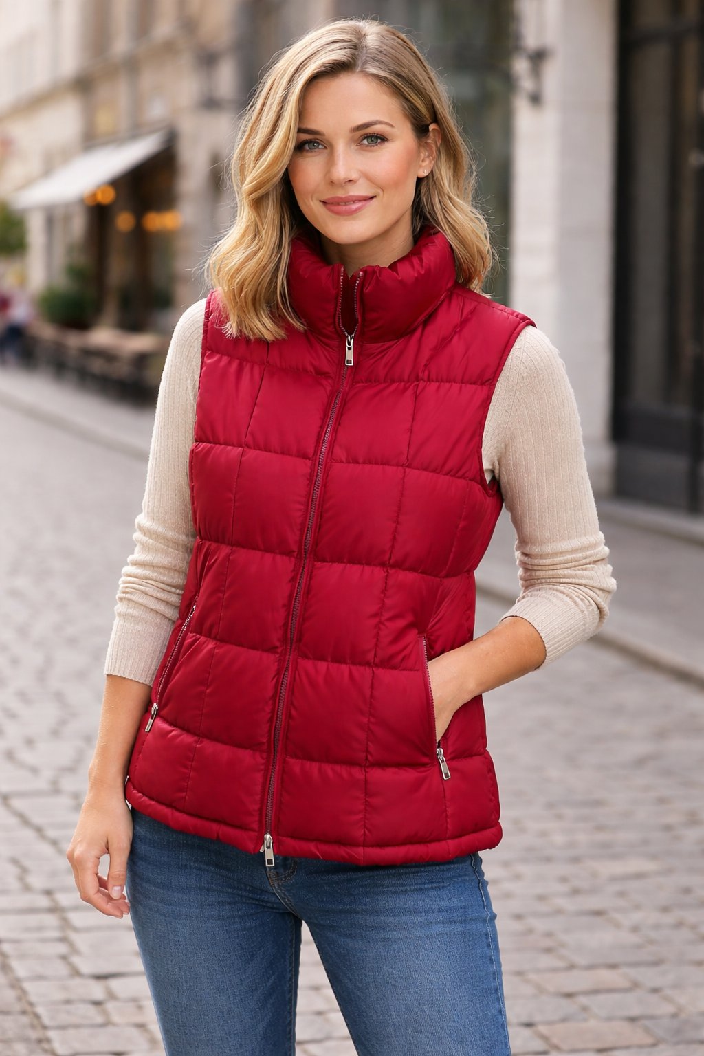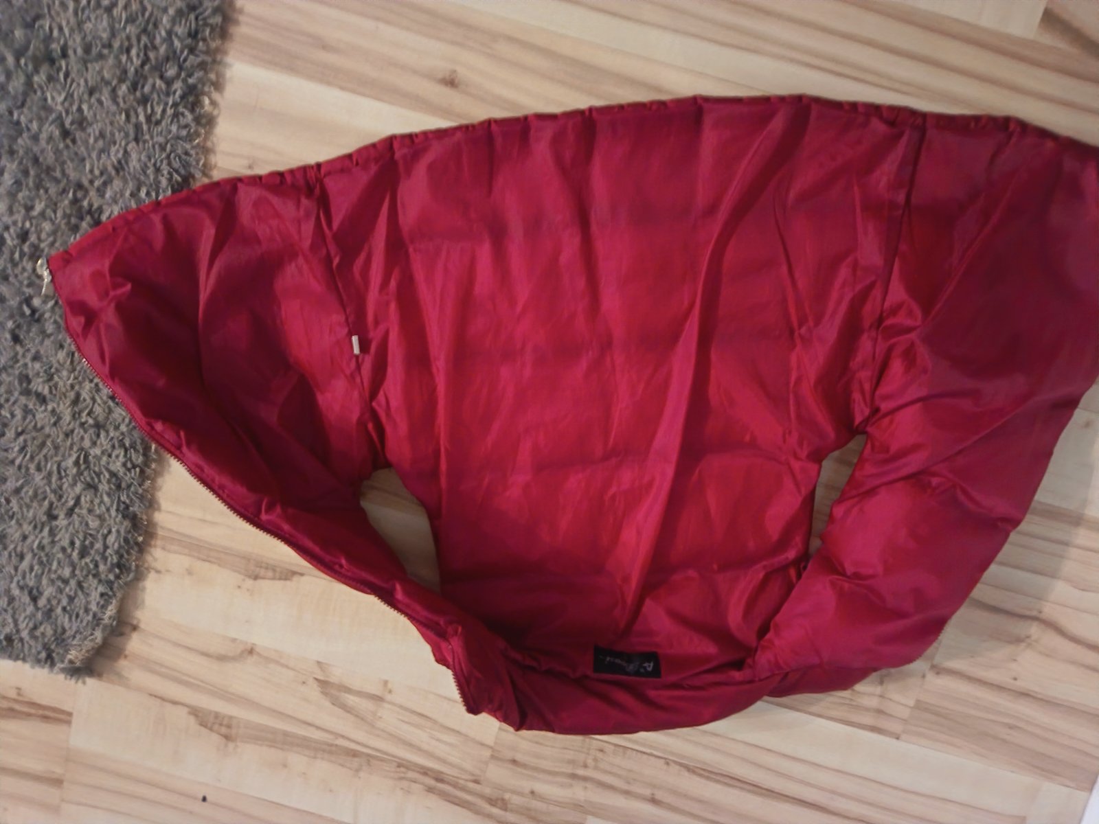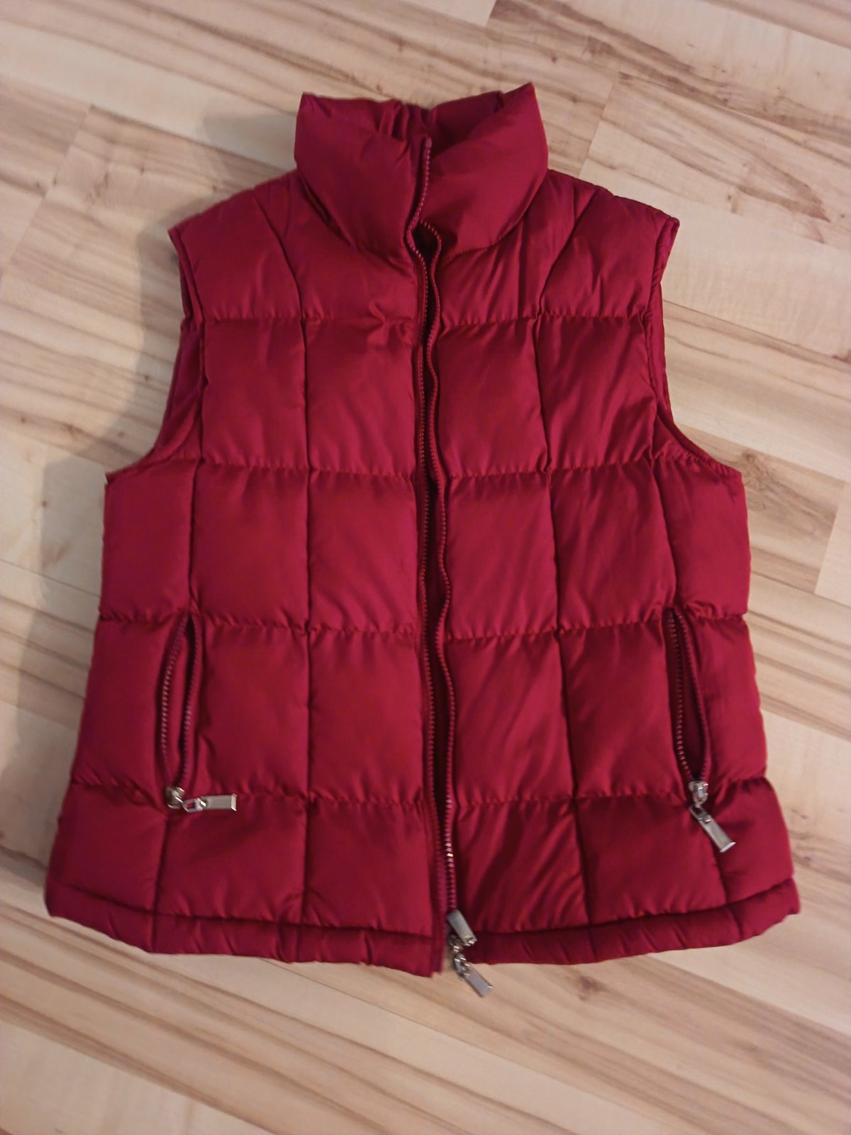 Predám dámsku páperovú vestu veľ.M na štítku je písaná veľ. L ale sedí na M lebo je užšia. Rozmery:dlžka je 57cn šírka meraná pod pazuchou je 48cm. Farba je vínovo červená. Vesta je bez poškodenia.