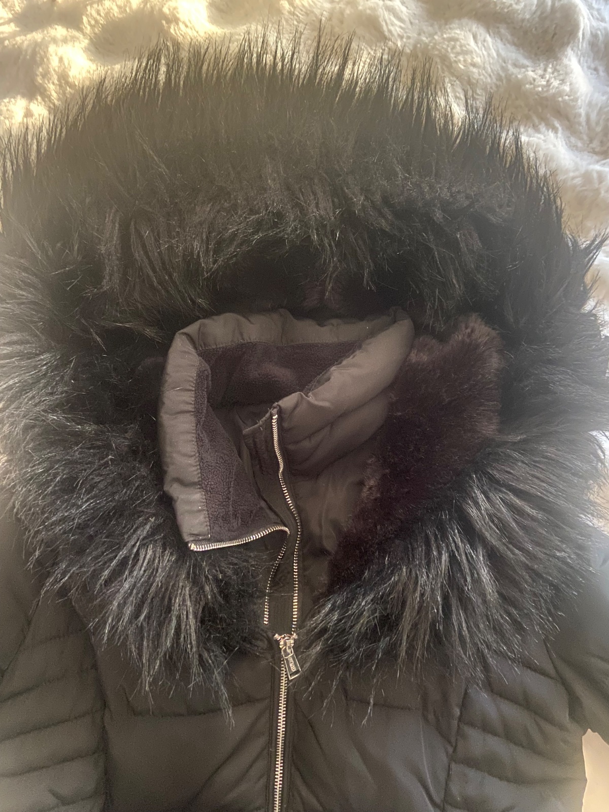 Vetrovka 2x oblecena, je ako nova. Kapucna je z vnutra zateplena kozusinou, z vonka ma dokola kozusinu. Sirka cez prsia od pazuchy k pazuche 53cm, boky 63cm. Kupena za 150€
