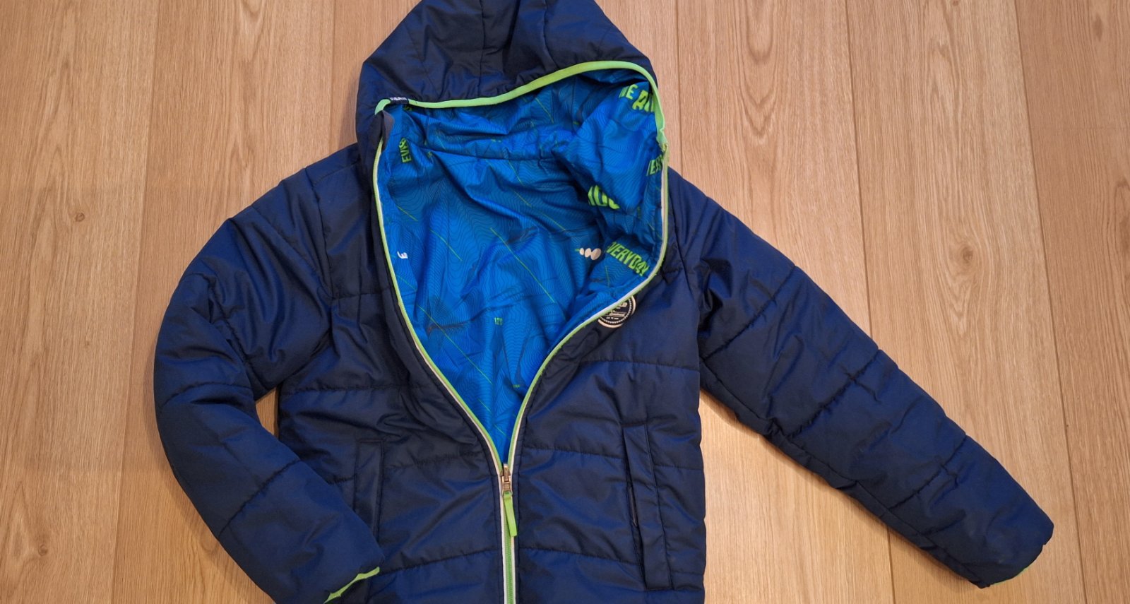140/146, pozri rozmery, farba je krásna tyrkysová, nedá sa presne odfotiť, má aj vrecko na rukáve.