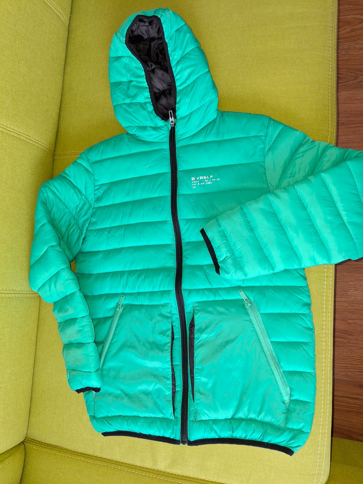 Krásna hráškovo zelená bunda...kúpená nová nosená len synom...je bez poškodení...miery na fotkách...cena 15€ + pošta na dobierku neposielam