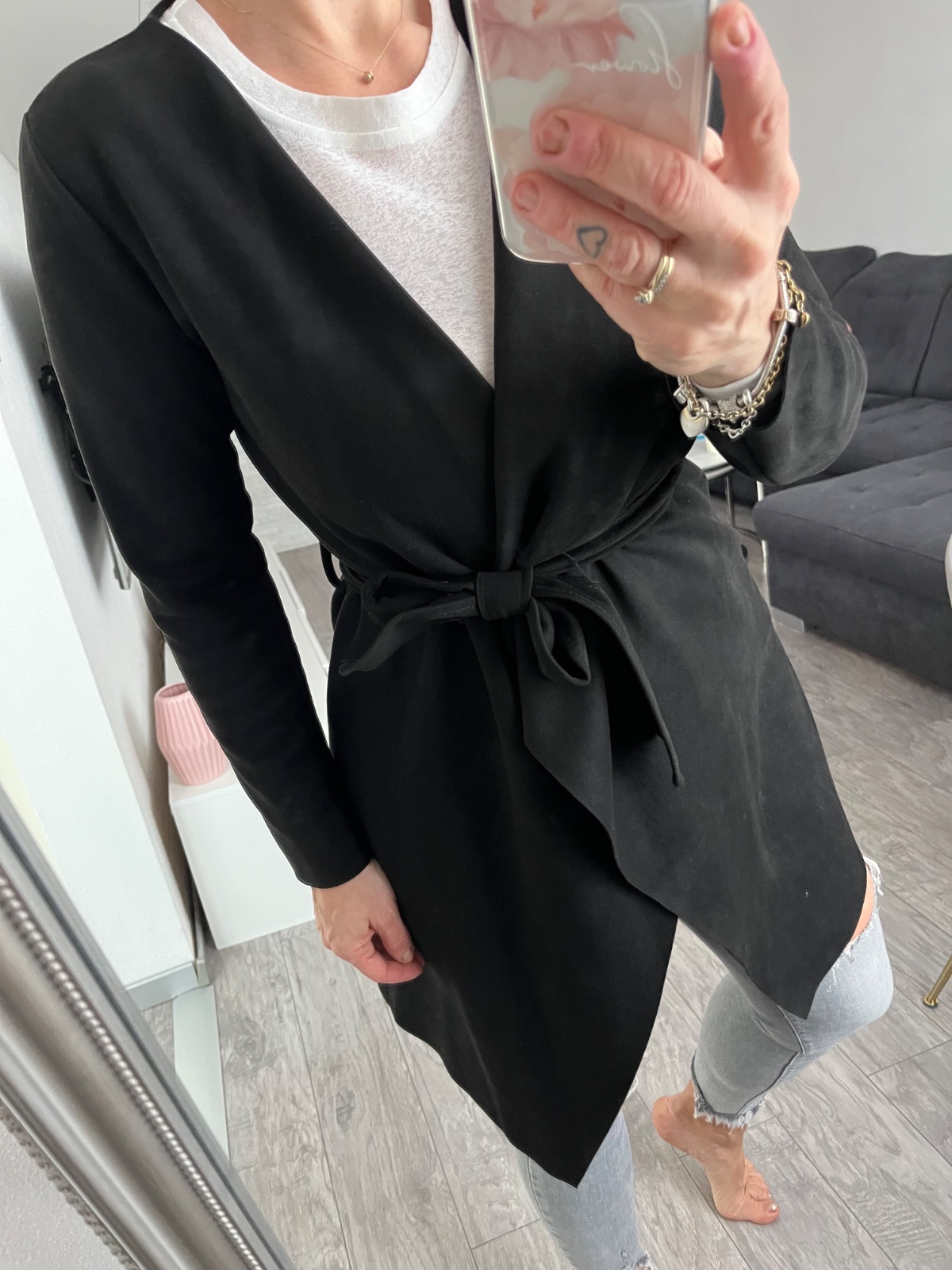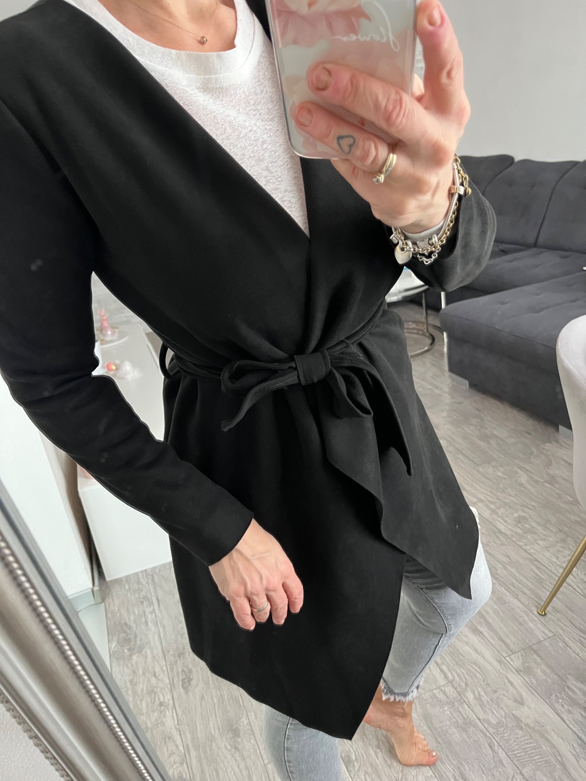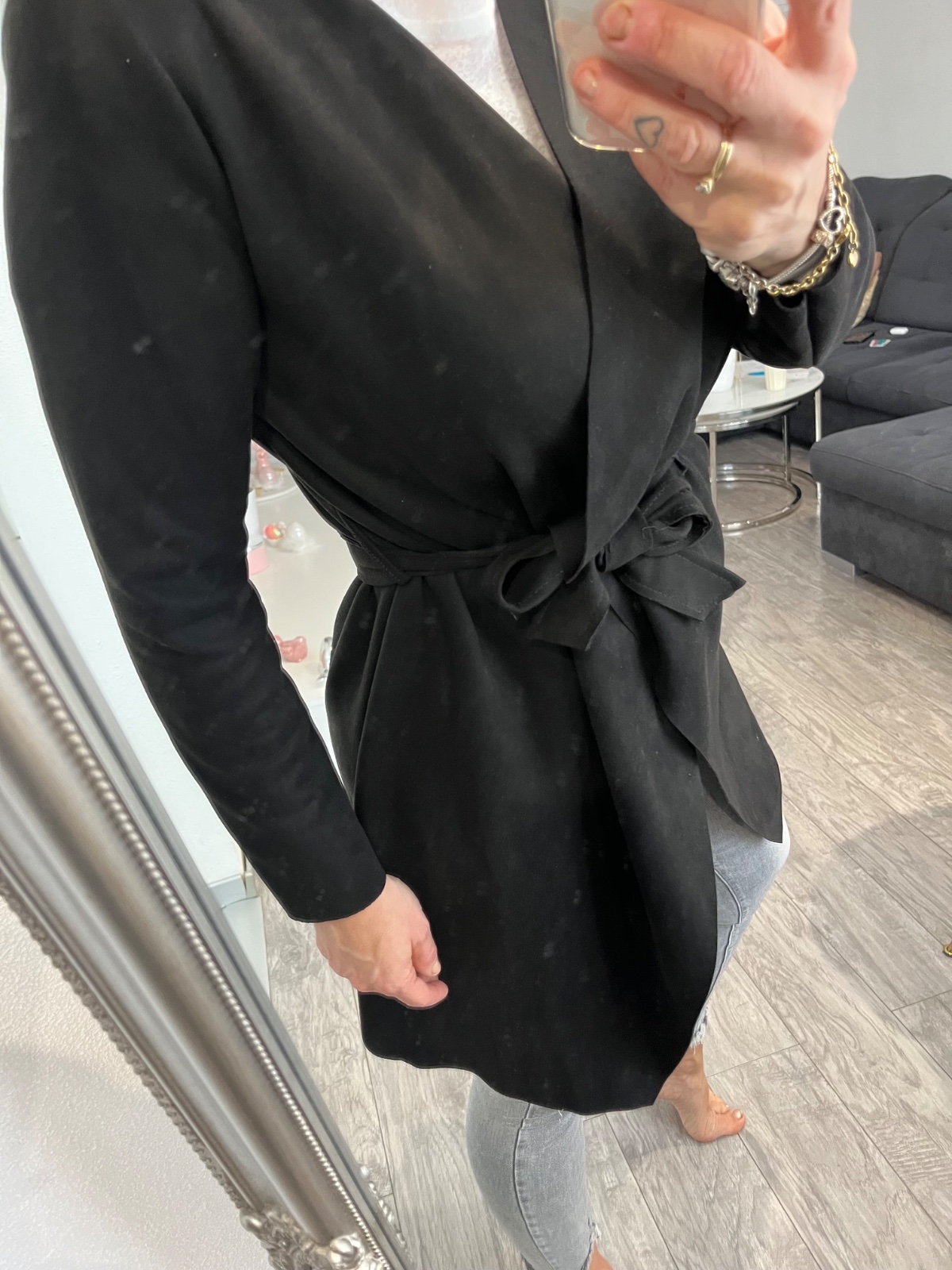 Dámsky kabát prechodny na zaviazanie na opasok uni velkost sedi od xs-m, top stav oblecene par krat
