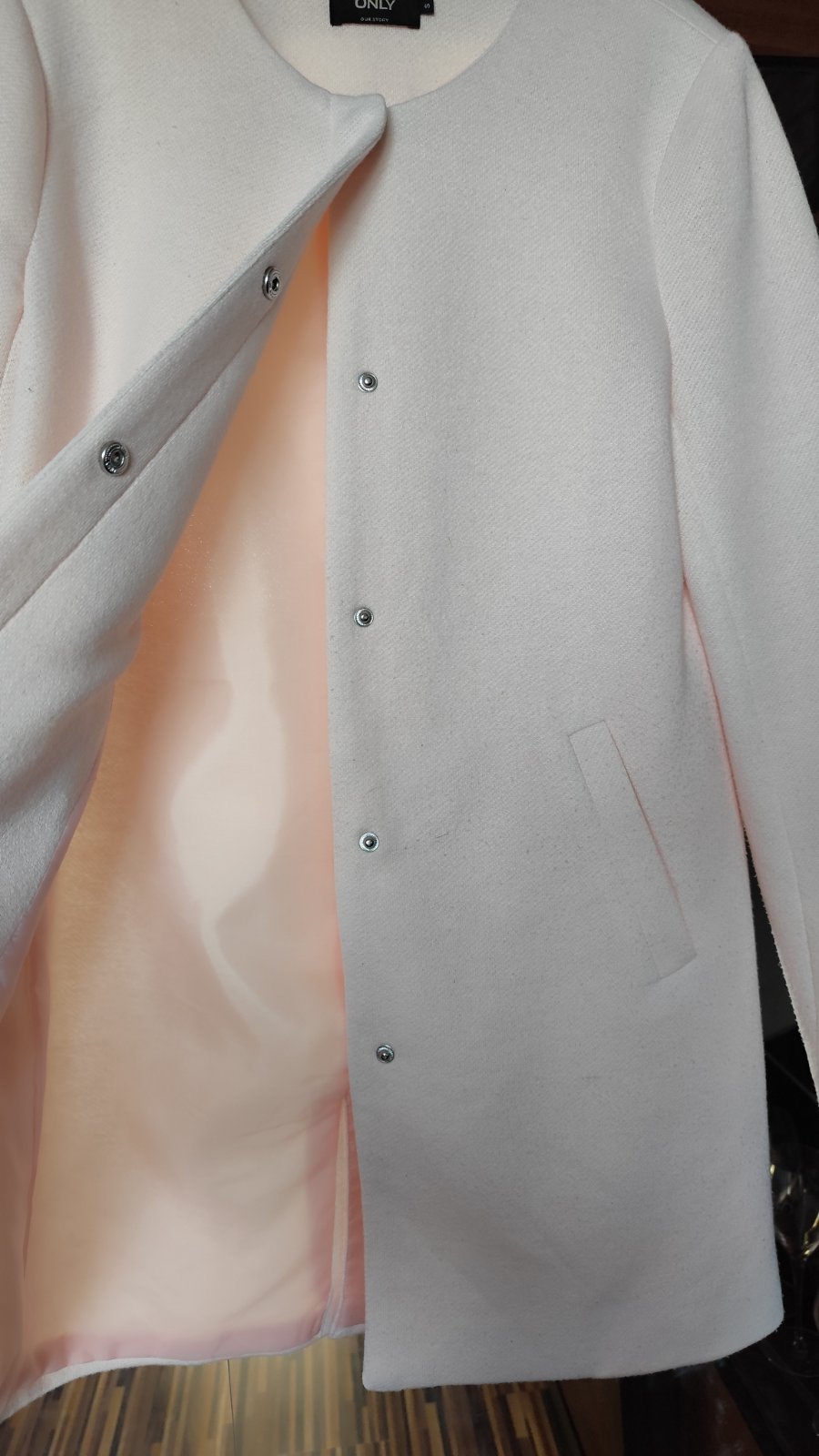 Prechodný kabátik značky Only, dobrý nosený stav, farba marhulova, podsity, zapínanie na cvoky, rozmery viď foto,plus poštovné.
