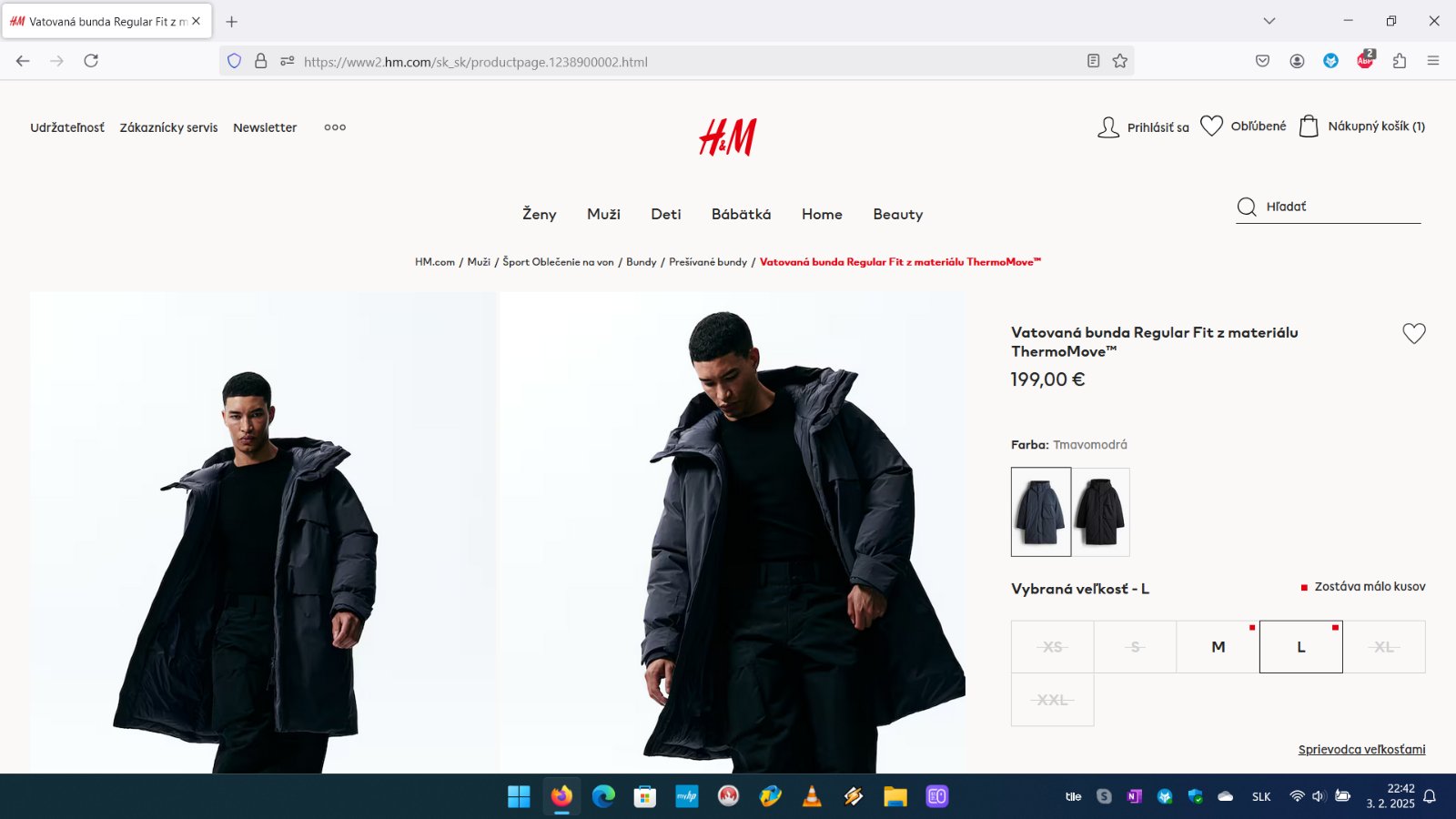 Ďalej predám pánsku zimnú bundu s kapucňou H&M ThermoMove, veľkosť L. Bunda je z vetruodolnej a vodoodpudivej funkčnej látky, ktorá vás udrží v teple, keď sa ochladí, no zároveň je ľahká a priedušná. Klasický strih, kapucňa s elastickým tunelovým sťahovaním vpredu aj vzadu. Zapínanie na obojsmerný zips s ochranou pred odieraním pod bradou a ochrana pred vetrom so skrytým zapínaním na suchý zips. Dlhé rukávy s nastaviteľným pútkom na suchý zips. Náprsné vrecko s chlopňou a spevnené vnútorné vrecko, obe so zapínaním na suchý zips. Podšitá, vatovaná. Cena 140eur.
