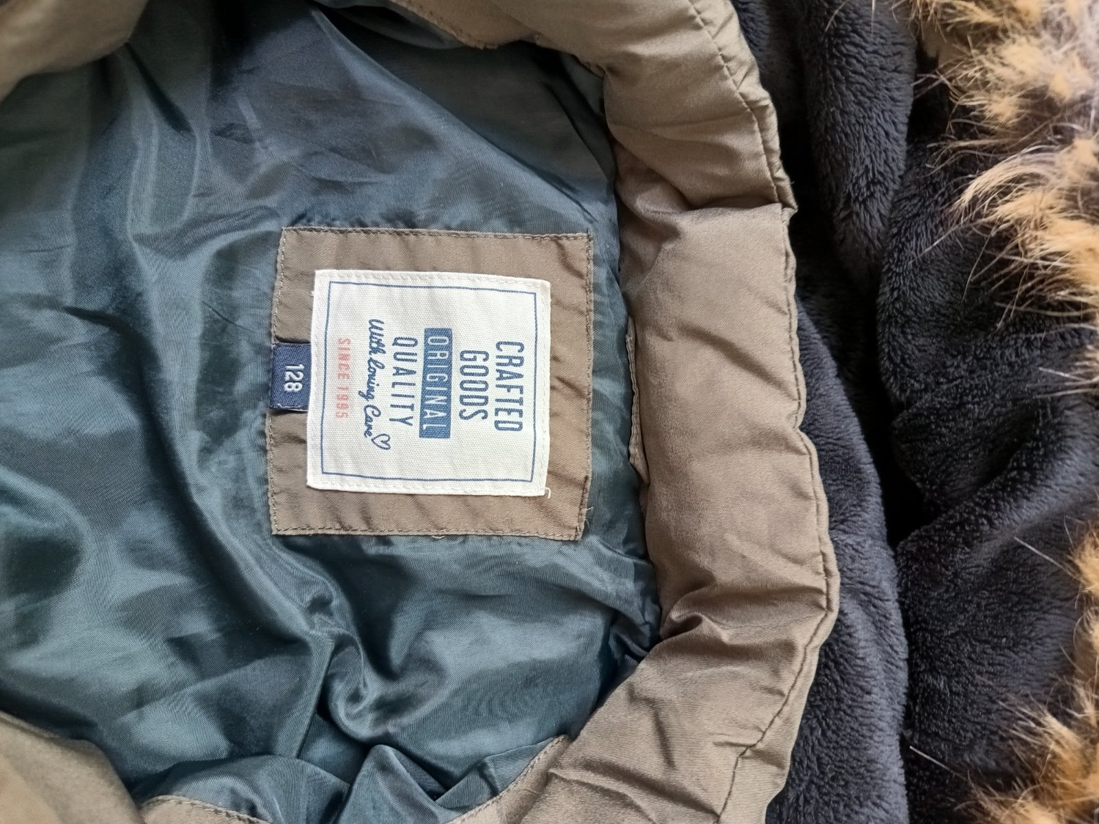 Pekný stav bez poškodenia, veľkosť na visačke 128, ale my sme nosili už od 122.