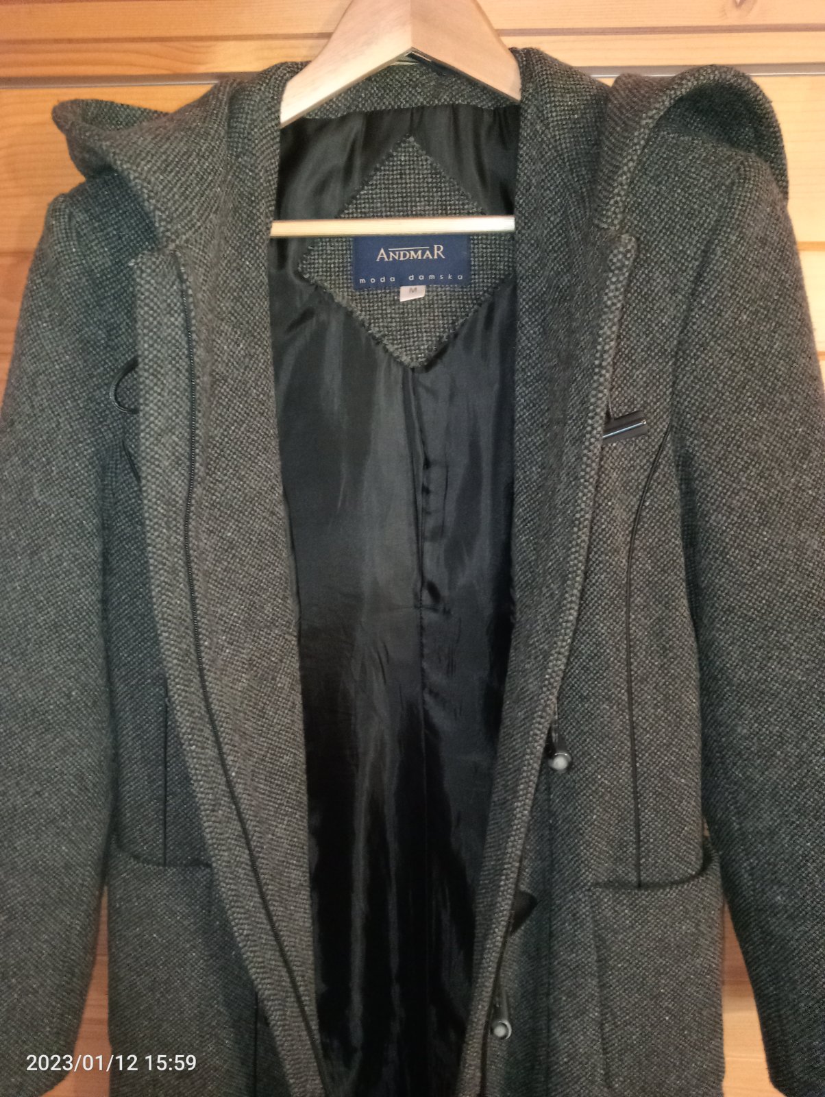 Ťažký je 1,5kg, t.j. nie je len taký tenučký. Je na zips aj na gombíky. Celková dĺžka 100 cm, cez prsia 50cm, rukáv od ramena 60cm a od pod pazuchy 42cm. Nie je nažmolkaný ani kožené uchytenia gombíkov nie sú popraskané.