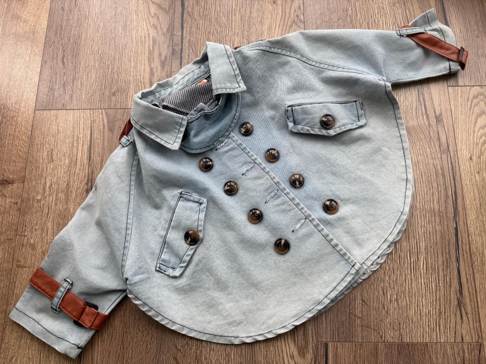 Predám dievčenskú rifľovú bundičku, riflovina nepodšitá, sačkovom type, pre chudšie dievčatko, vzadu a vpredu má schválne také rozpáranie. Veľ. 122, 6-7 rokov. Zachovalá.
