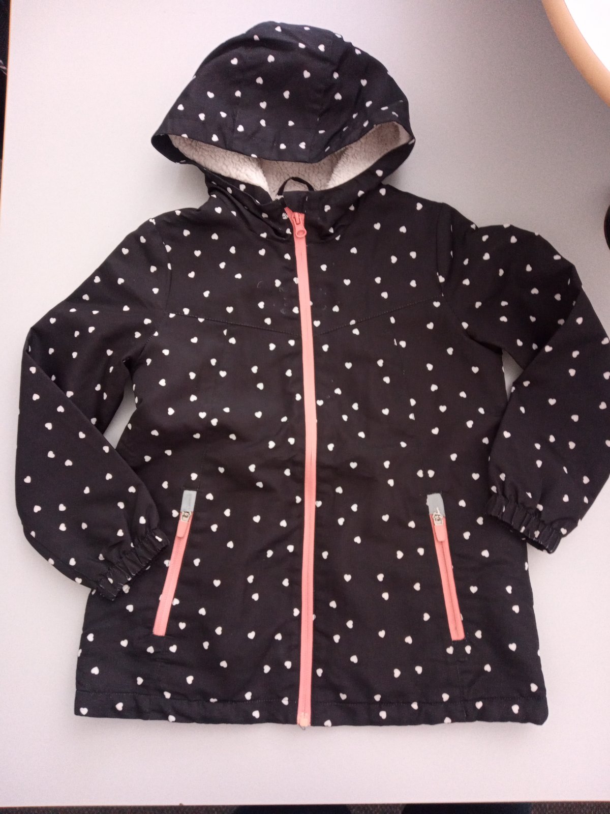 Výborný stav. Zapínanie na zips. Má vrecká a kapucňu. Veľ 8-9 rokov. Nie je podsita. Na jesenné a menej zimné obdobie.