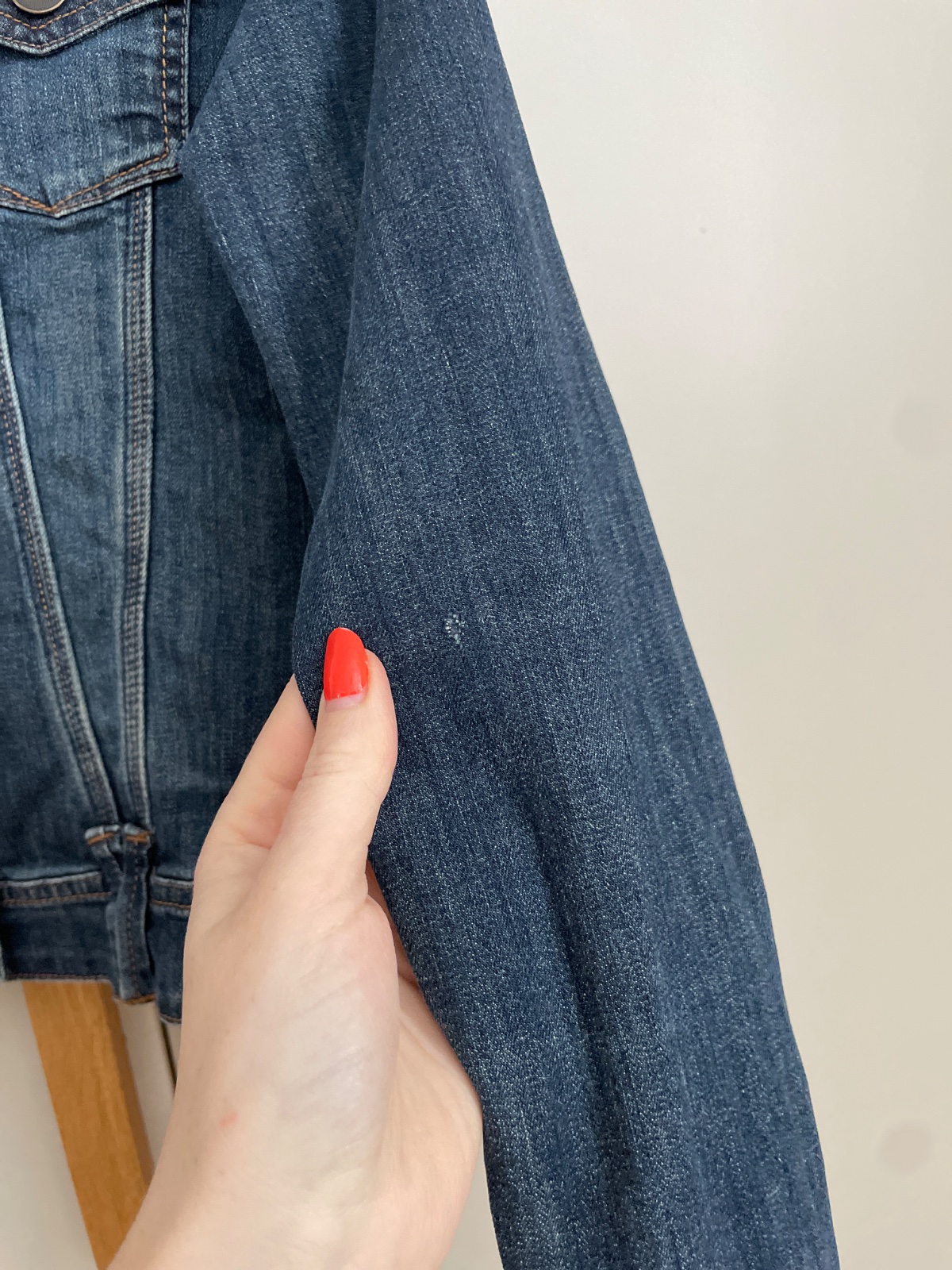Jemne zatrhnutie na rukáve, zohľadnené v cene