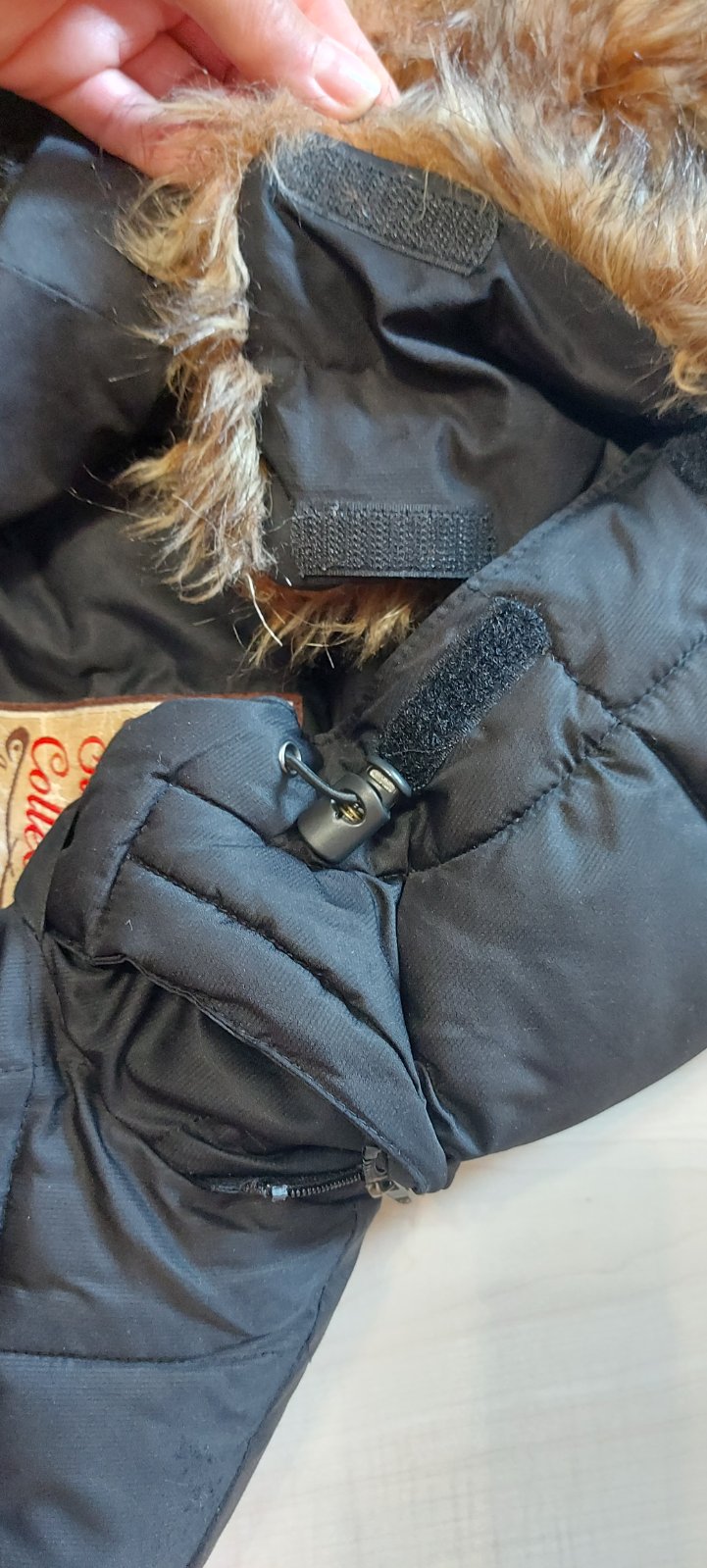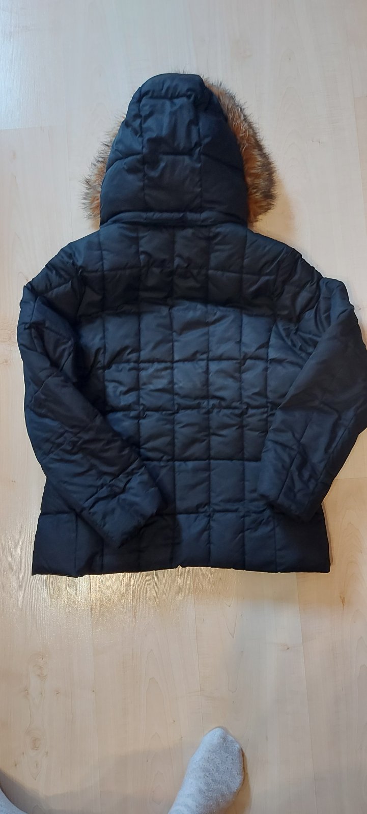 Nosena ale vo vybornom stave. Velkost M. Paperova. Odopinatelna kozusinka. Vrecka vpredu, zapinanie zhora, ale daju sa dat ruky do vrecka aj zboku. PC150 libier. Cena plus postovne