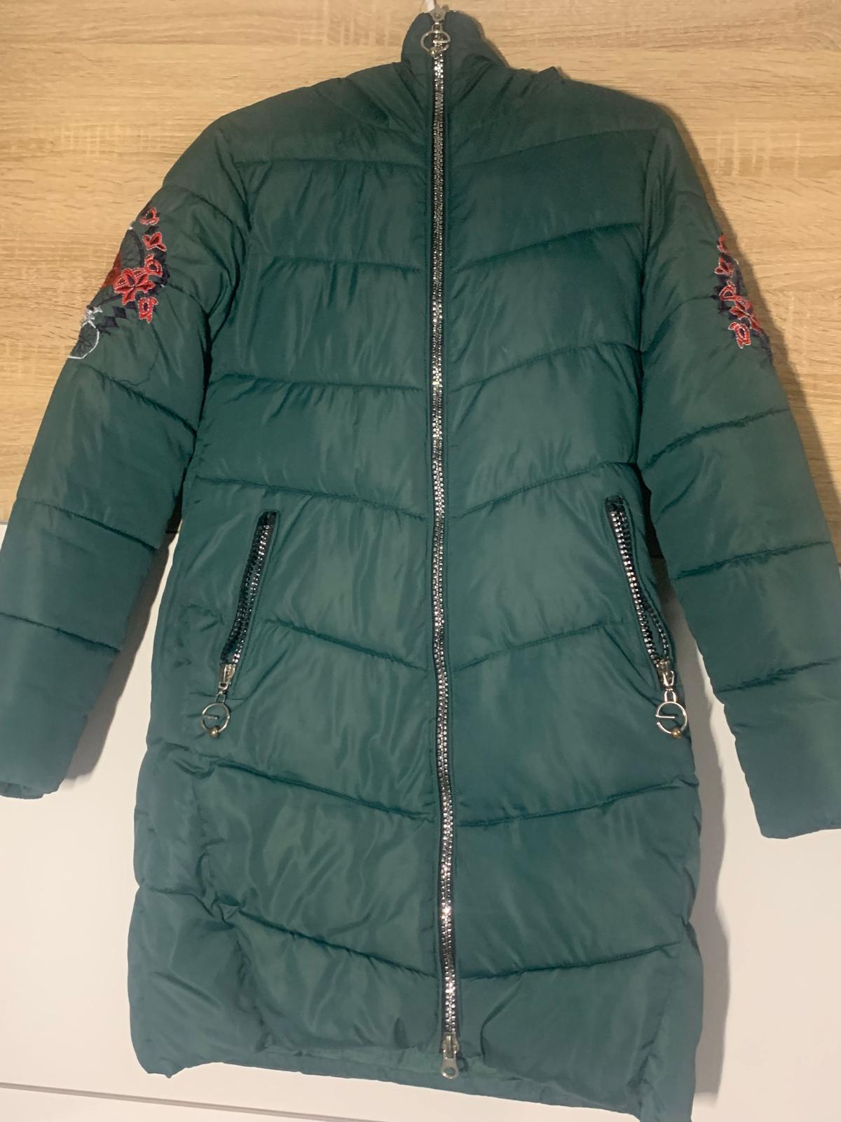 Zimu a bunda, vyšívané doplnky na rukávoch, píšu vek 11-12 rokov