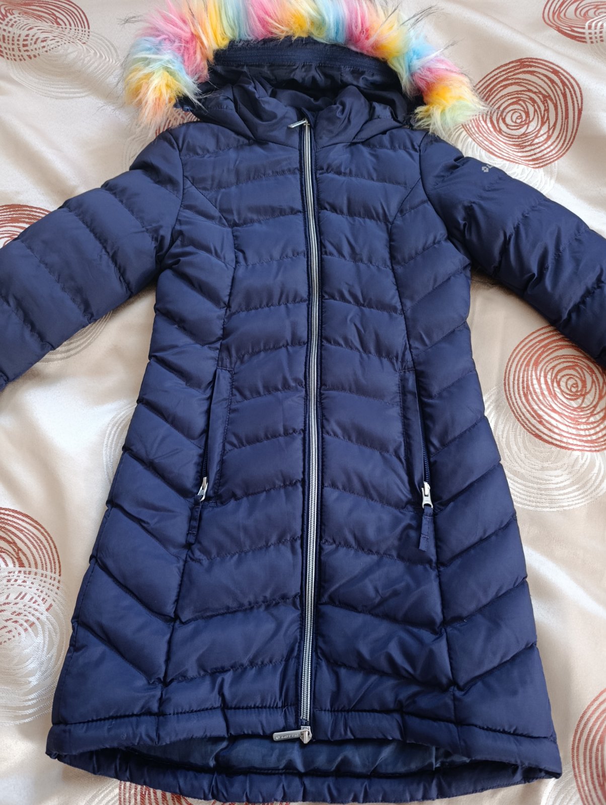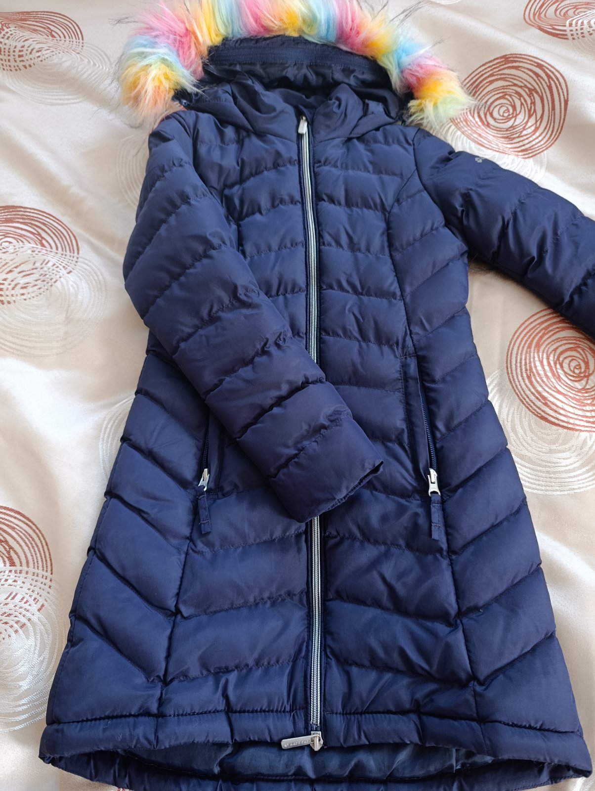 Vetrovka po dcérke. Je vo veľmi dobrom stave. Bez poškodenia. Dobre zakryje chrbát a zadok. Skôr by som odporúčala pre stihlejšie dievčatko. Kožušinka je odnímateľná.
