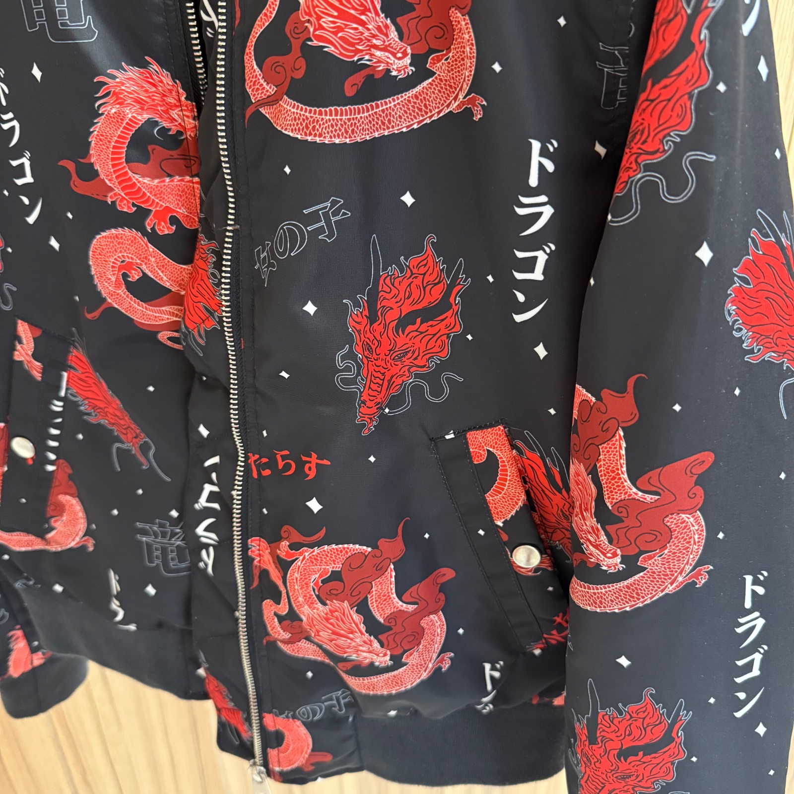 Predám štýlovú dámsku bomberu, 1x vyvetraná, mám ich veľa. Dve bočné vrecká, kov strieborný. Moderná potlač.