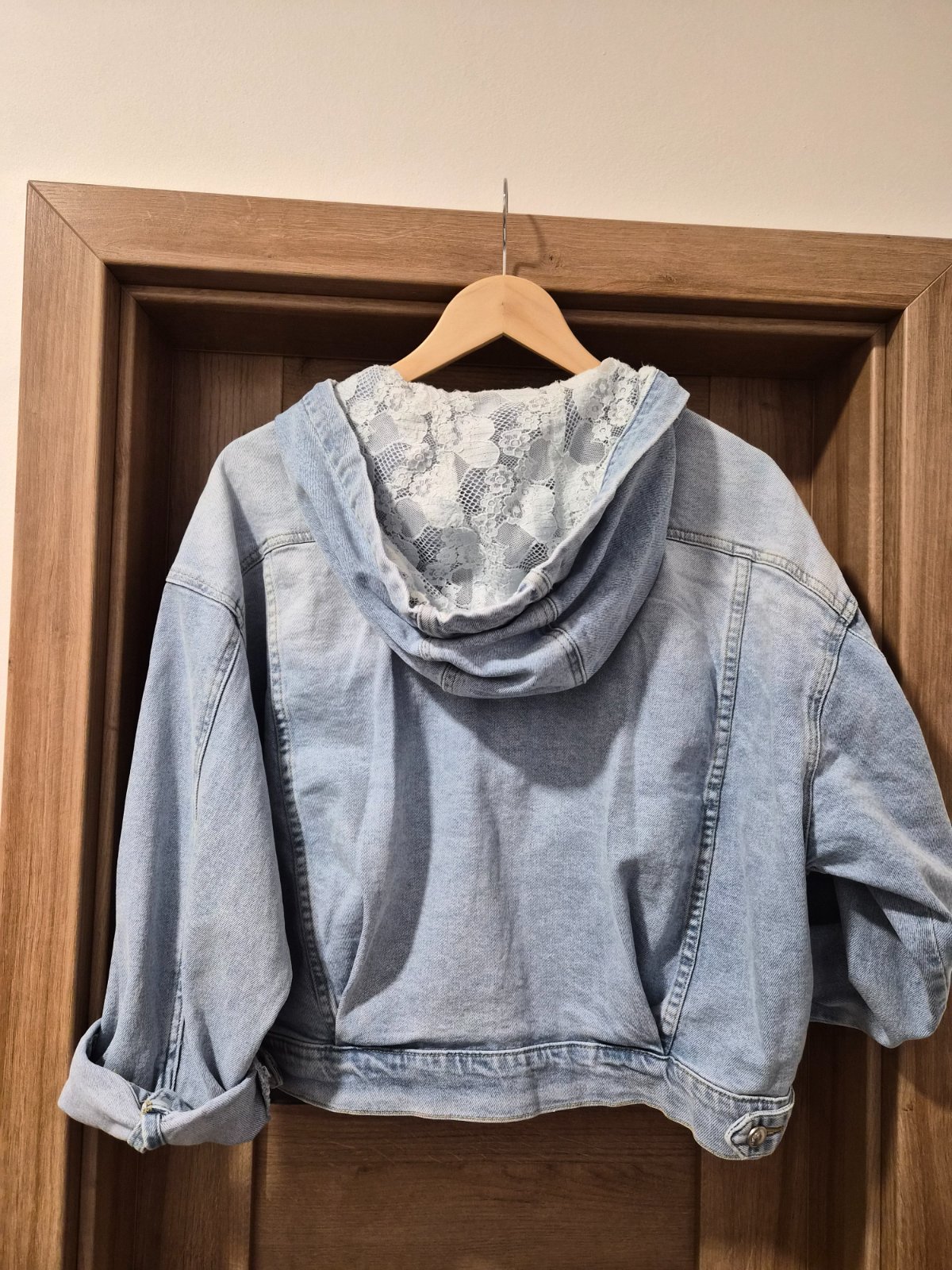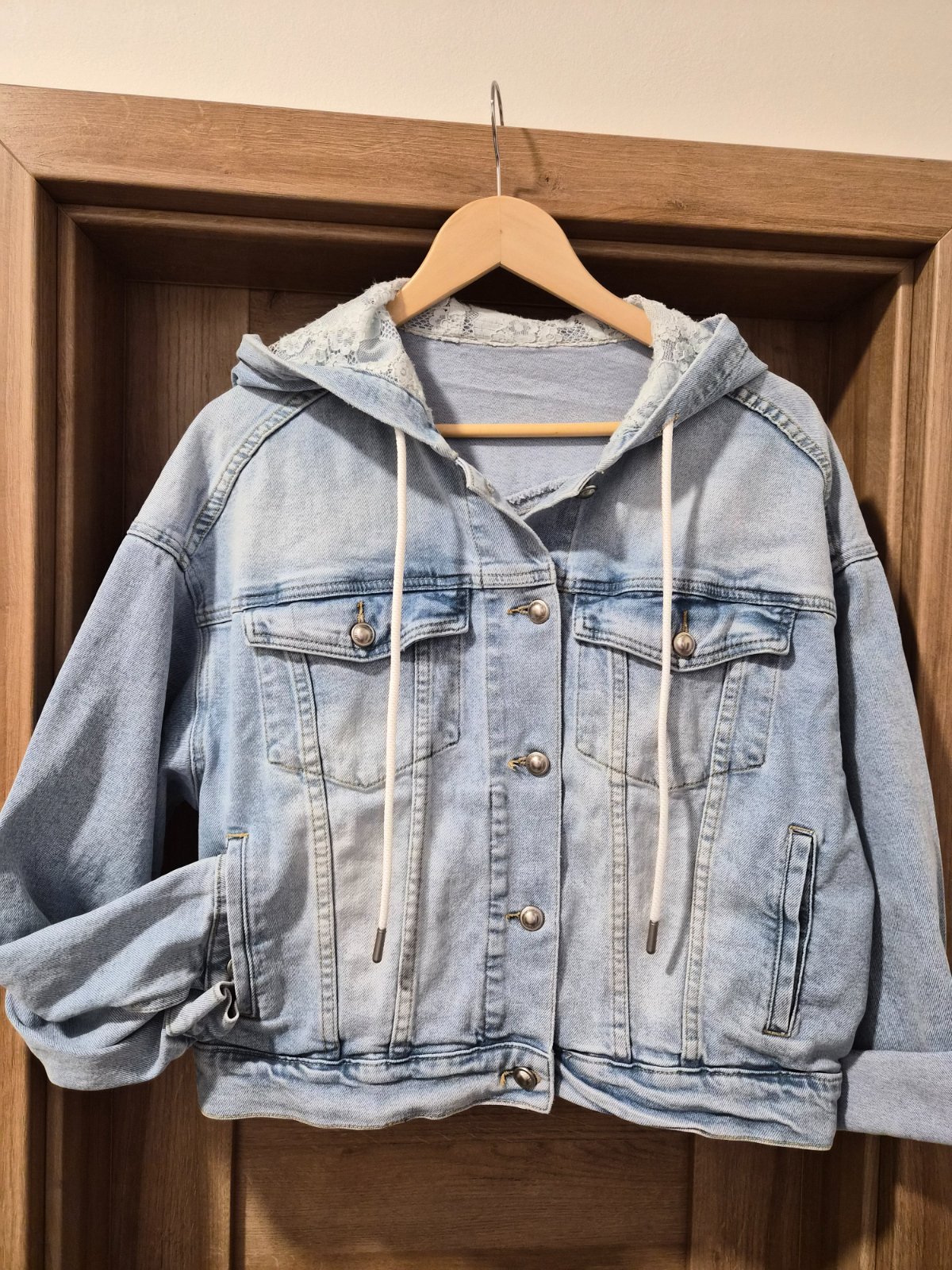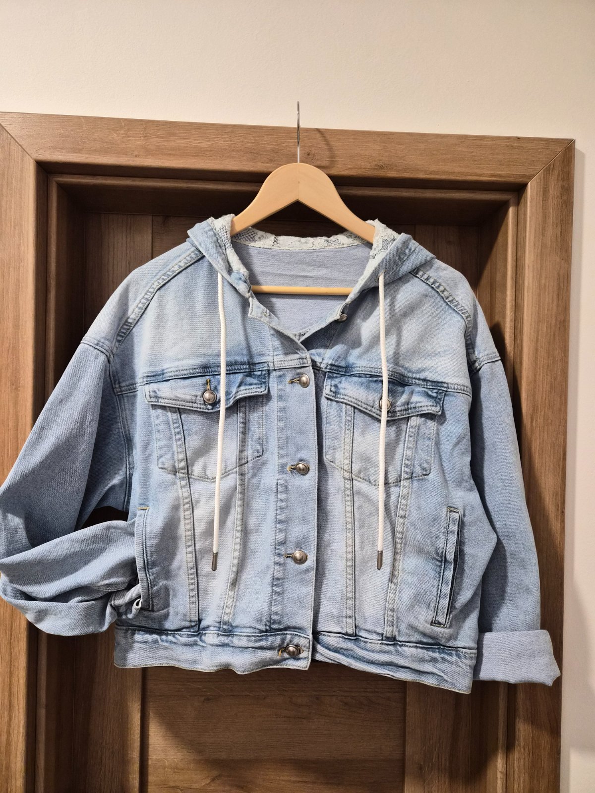 Pekná riflová bunda oversize môže sa nosiť od veľkosti M až po XL.Širka 60 cm a dĺžka 55 cm.