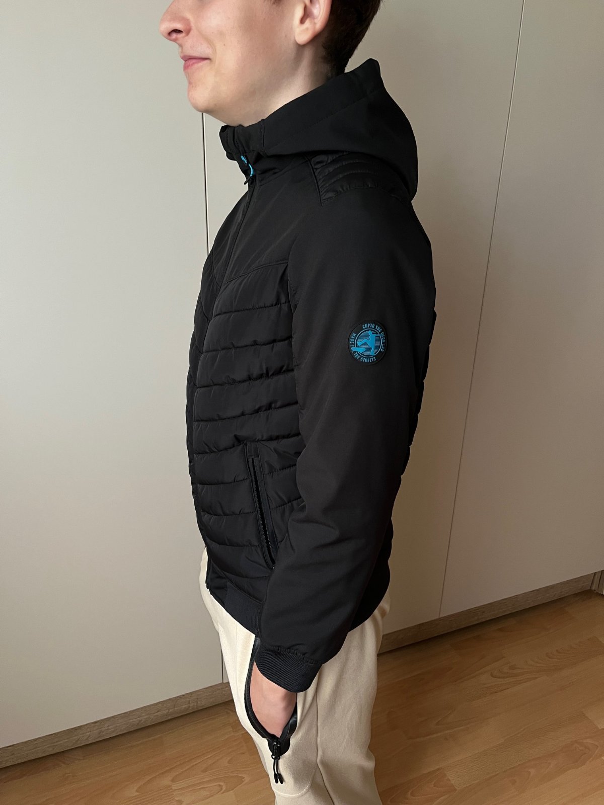 Predám peknú nepoškodenú chlapčenskú prechodnú bundu značky Takko vo veľkosti 146/152. Celková dĺžka od ramena je 60cm, šírka pod pazuchami je 46cm, dĺžka rukáva od ramena je 54,5cm.